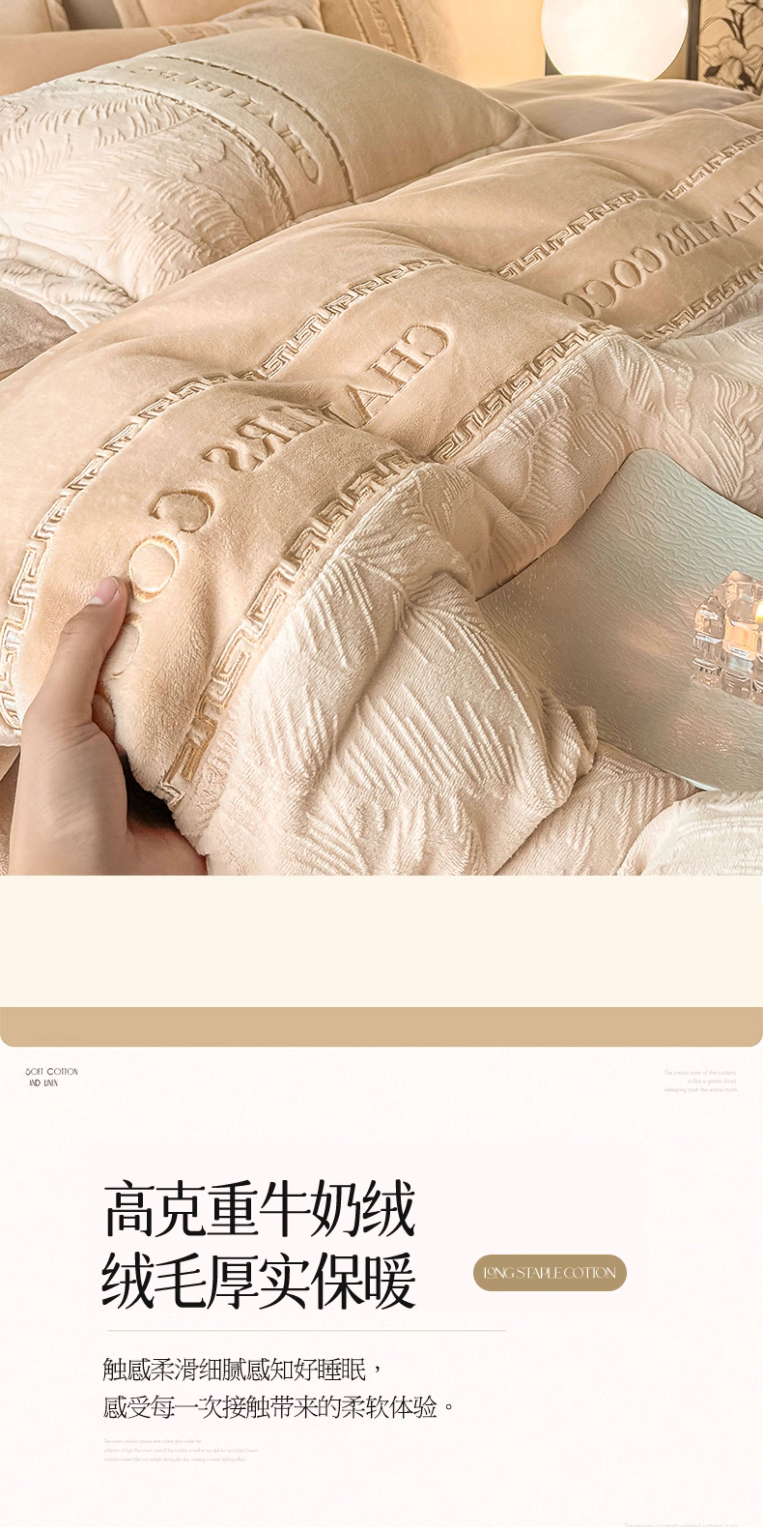 Yalu carved milk velvet four-piece set 2026 new winter thickened coral velvet quilt cover sheet three-piece bedding set