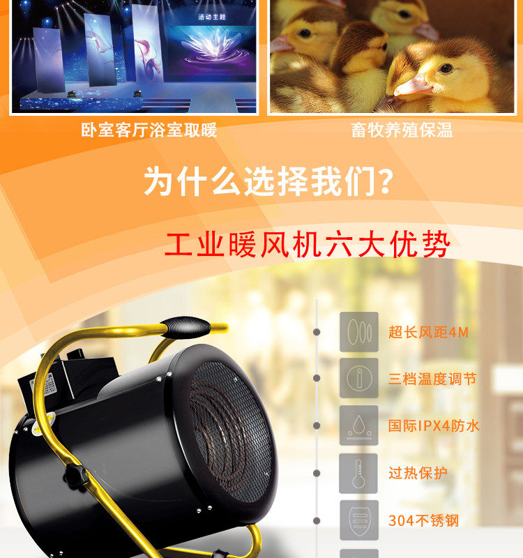 Electric Heater, Small Steel Warm Air Blower, Heater, Hot Air Fan, Dryer, Industrial High-Power Heating Stove, Waterproof
