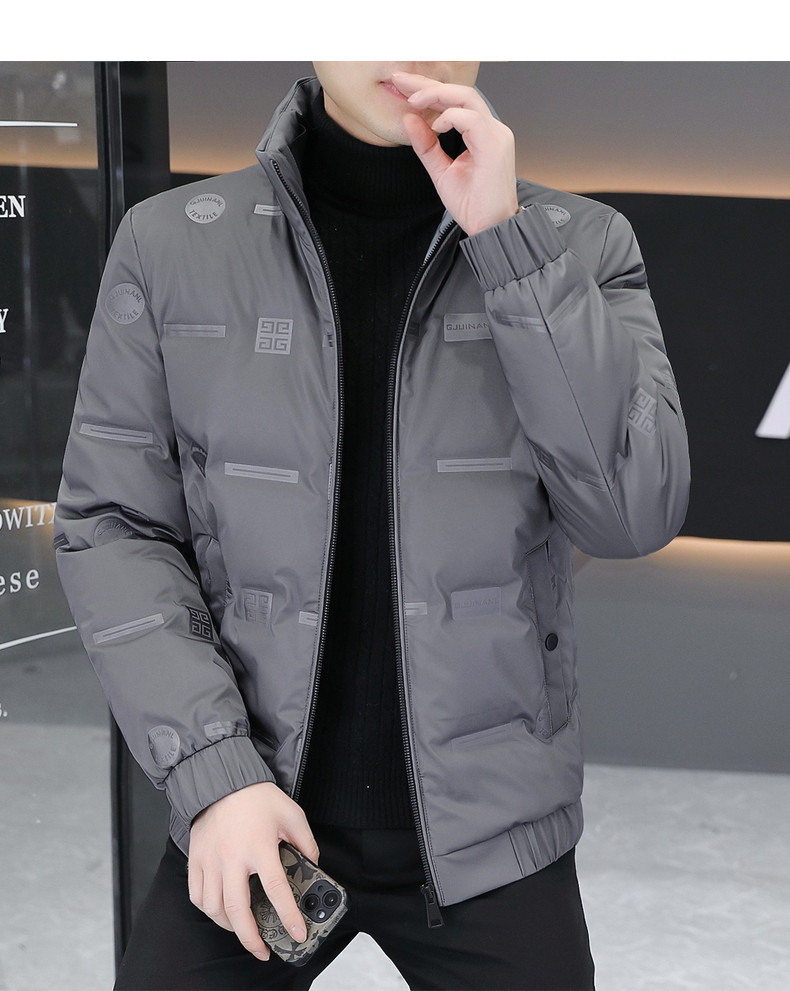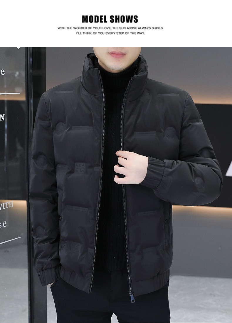 Winter Men's Lightweight Down Jacket 2024 Trendy Stand-up Collar Personalized Embossed Top Fashion Youth Personalized Handsome Jacket