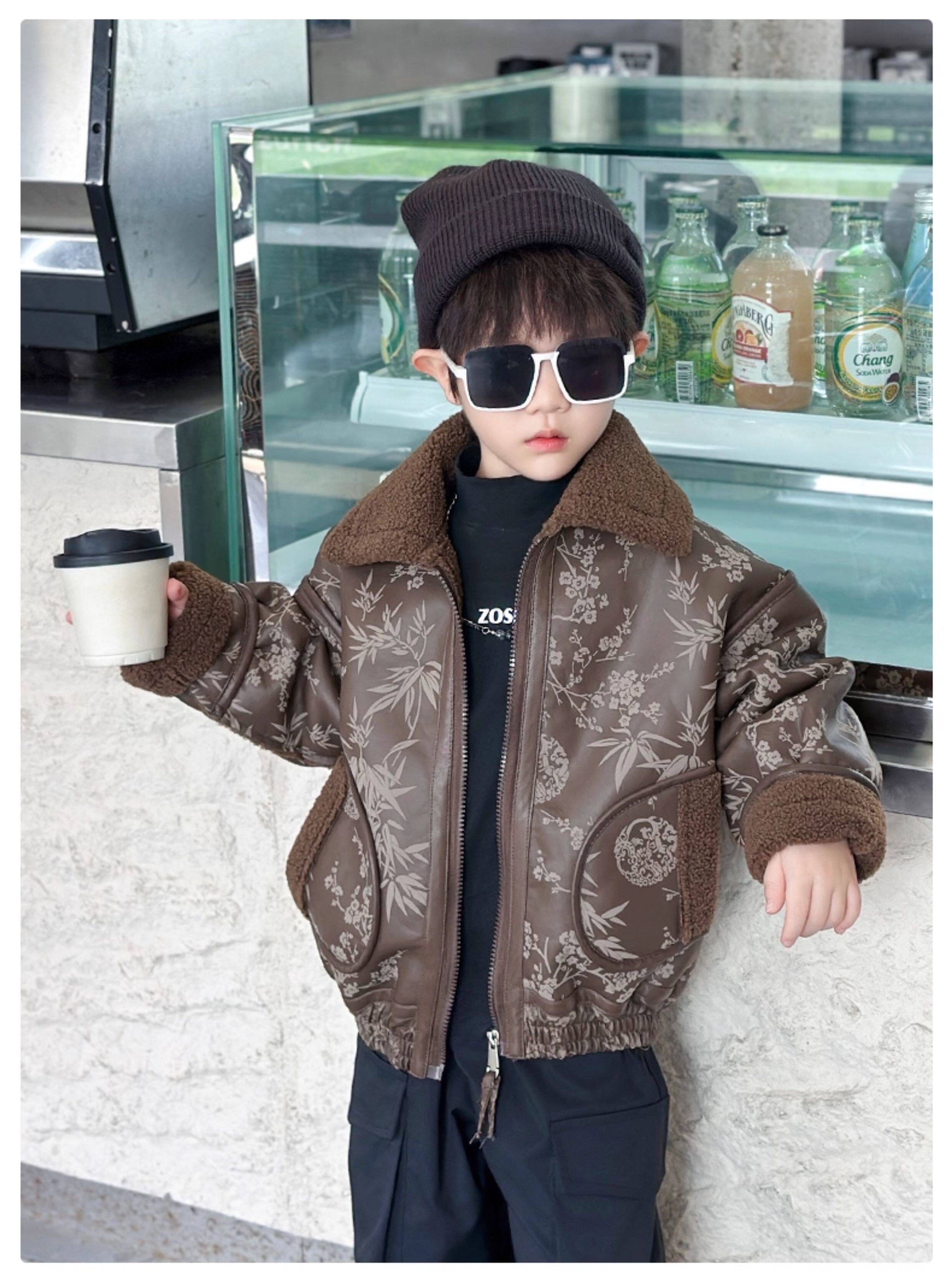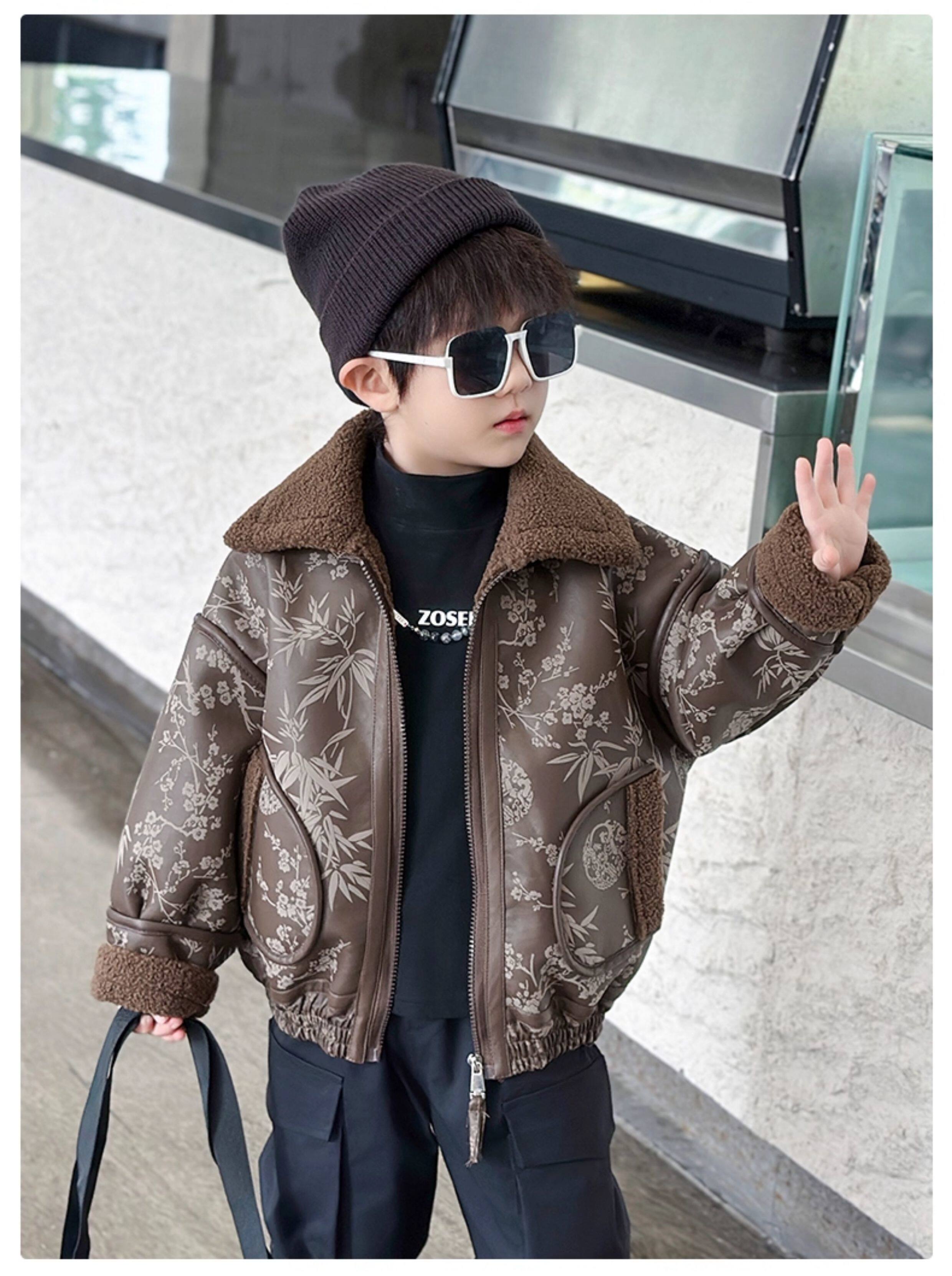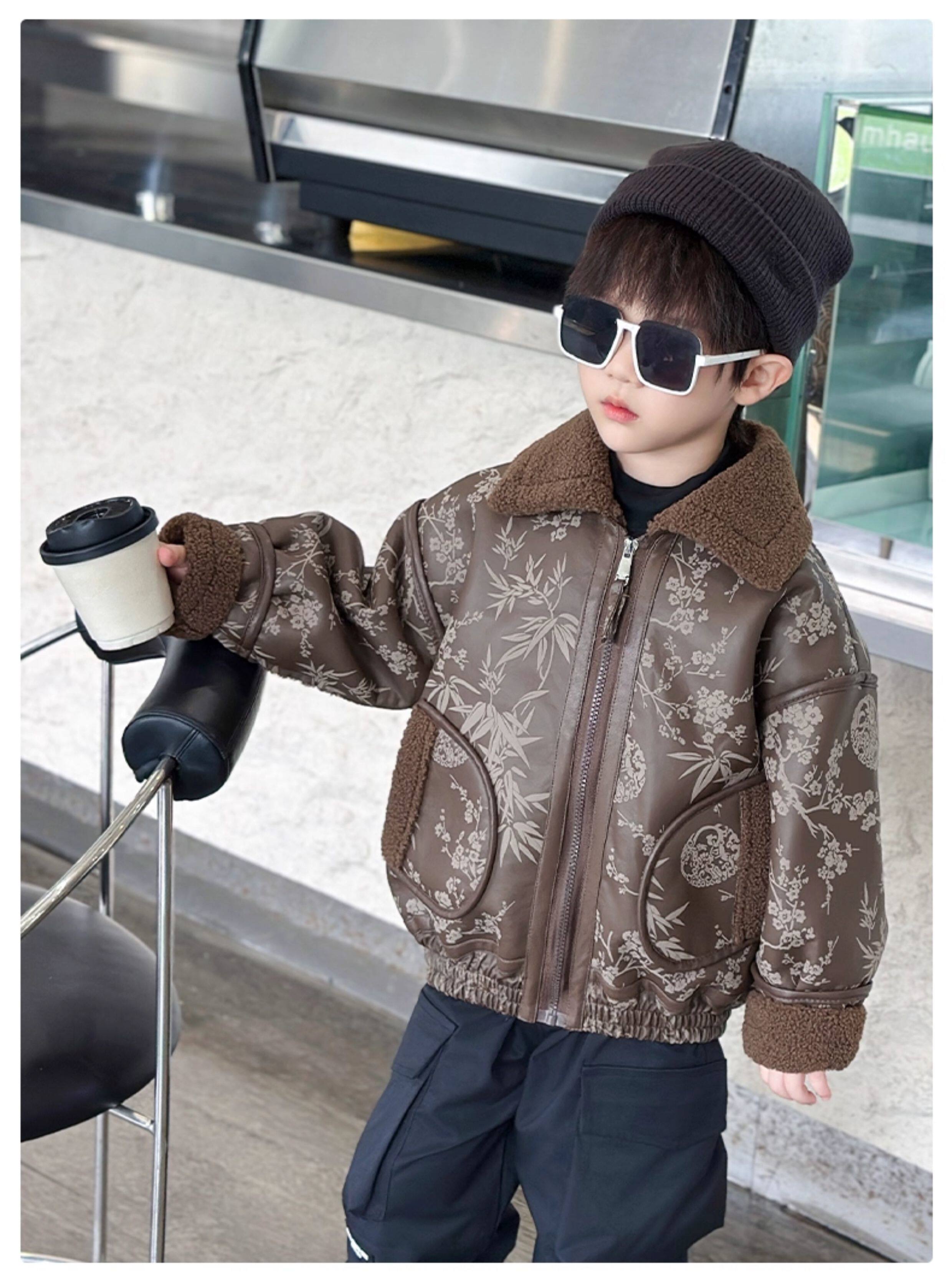 Boys' Fleece-Lined Jacket, Autumn and Winter 2025 New Style, Stylish Children's Leather Jacket, Cool and Handsome Baby Boy Winter Thickened Top