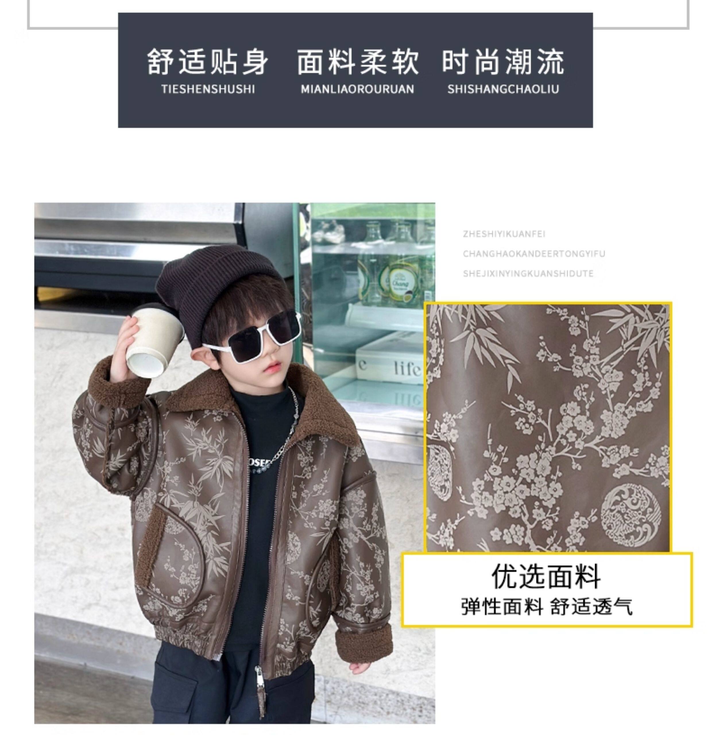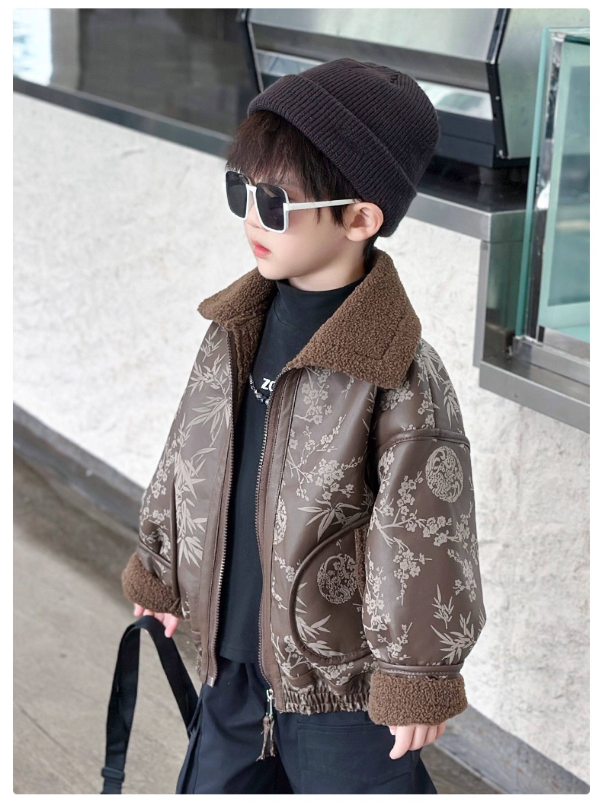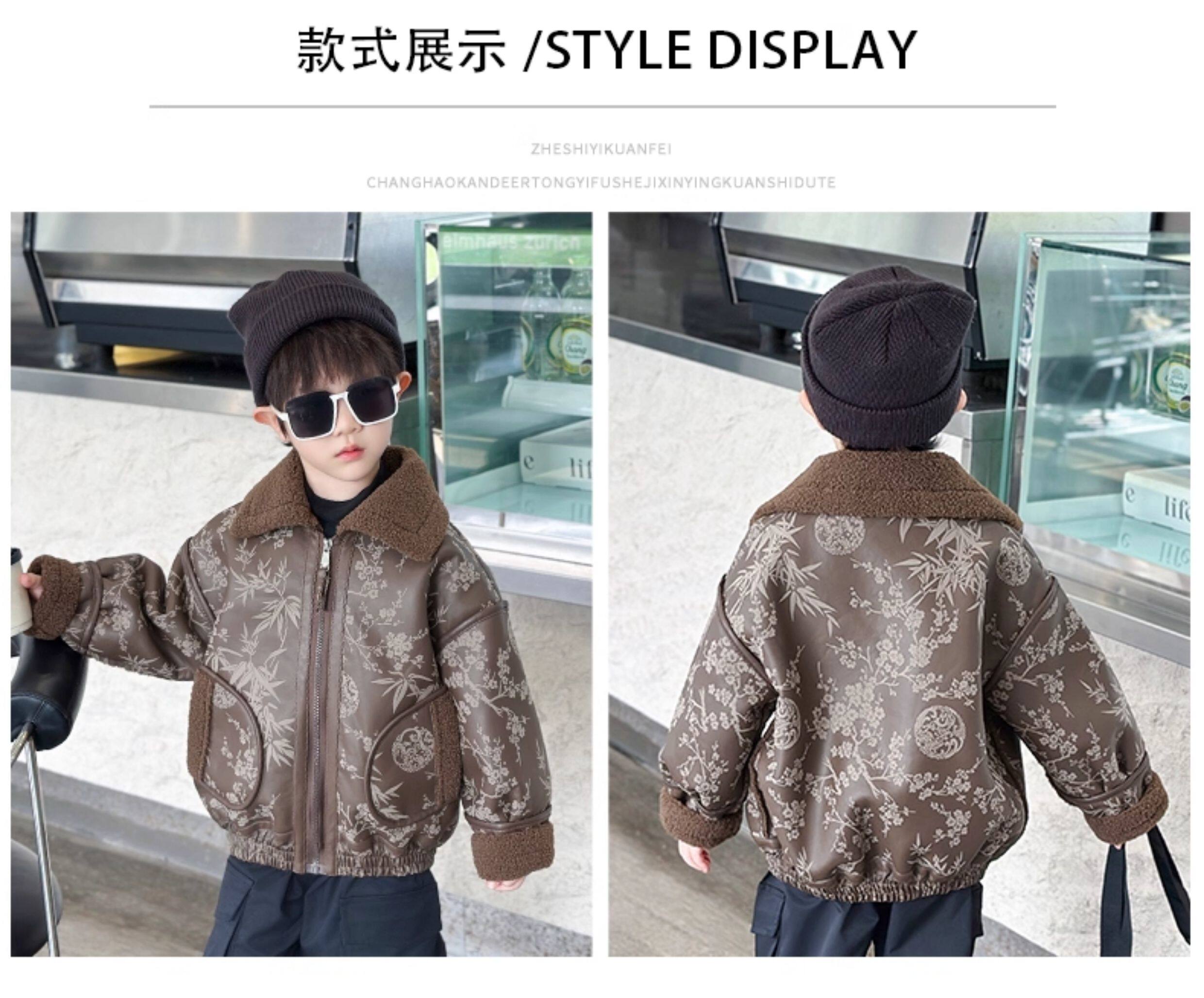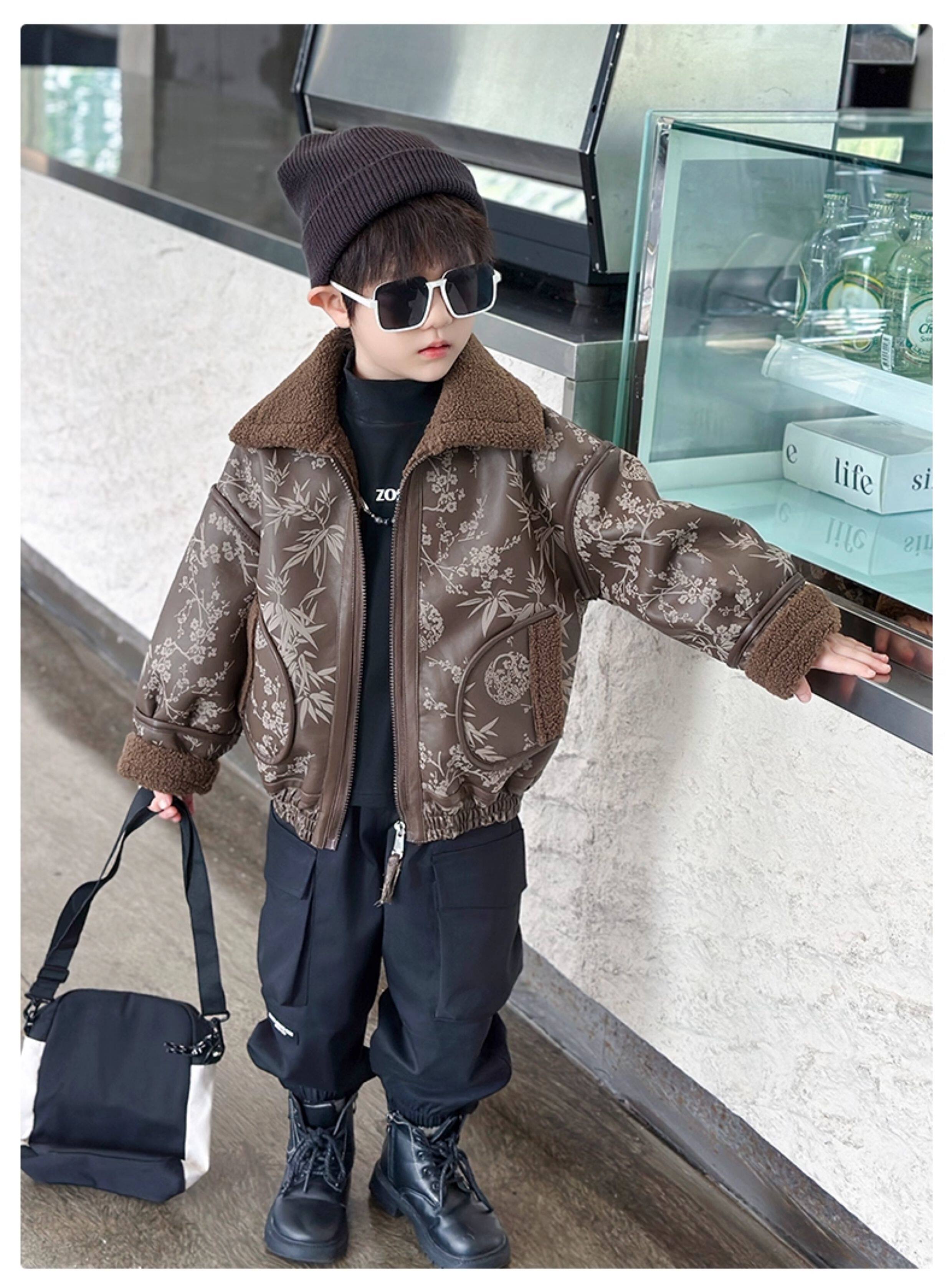 Boys' Fleece-Lined Jacket, Autumn and Winter 2025 New Style, Stylish Children's Leather Jacket, Cool and Handsome Baby Boy Winter Thickened Top