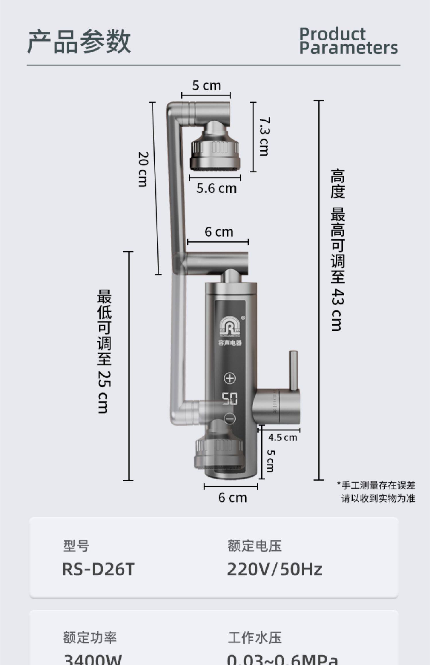 Rongsheng Electric Hot Water Faucet for Home Use, Fast Instant Heating for Kitchen and Bathroom, Tap Water Hot and Cold Water Heater