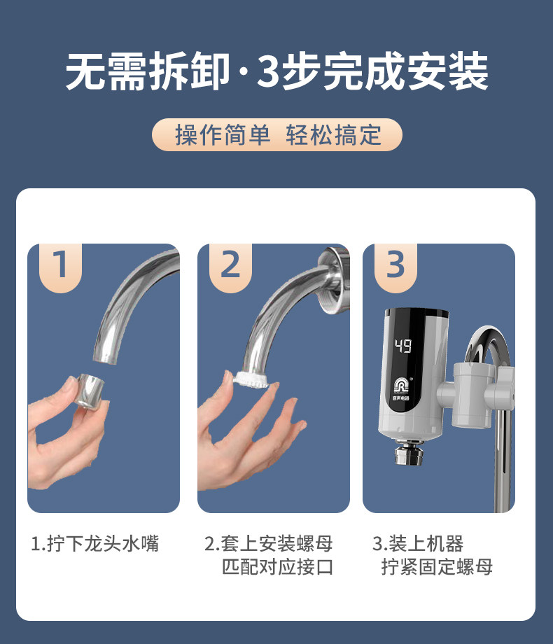 Rongsheng Electric Hot Water Faucet for Home Kitchen and Balcony, Instant Hot Water Without Installation, Cold Water Heater