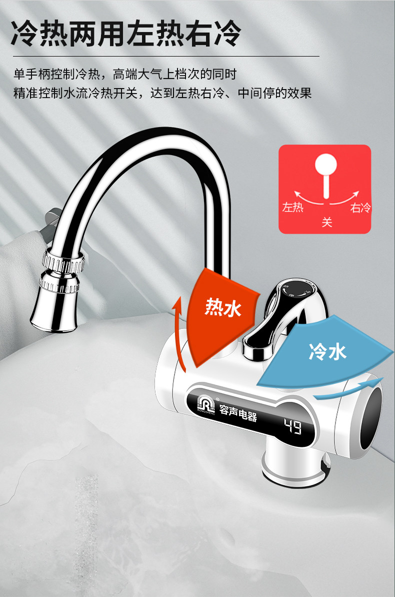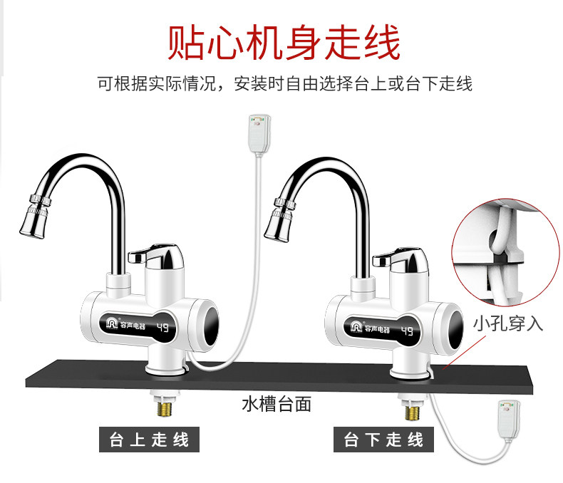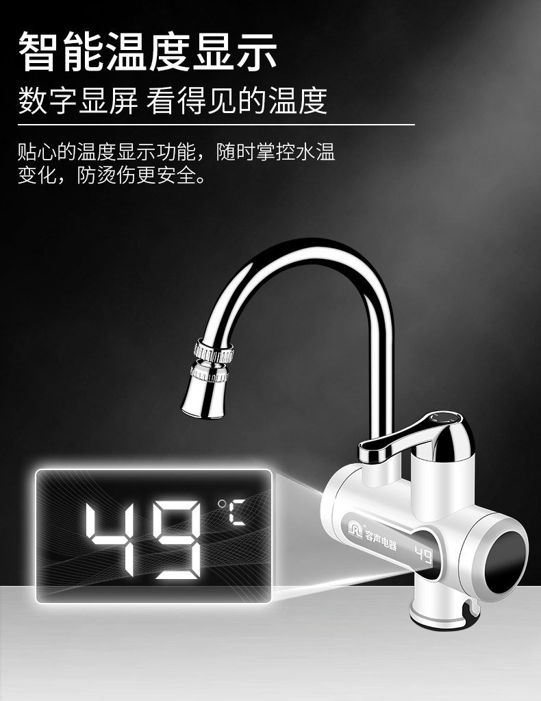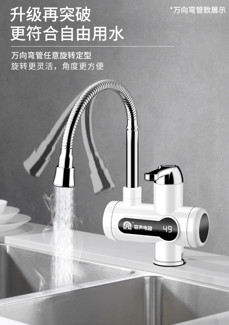 Rongsheng Electric Hot Water Faucet with Long Flexible Hose, Instant Heating for Kitchen and Bathroom Tap Water Heater