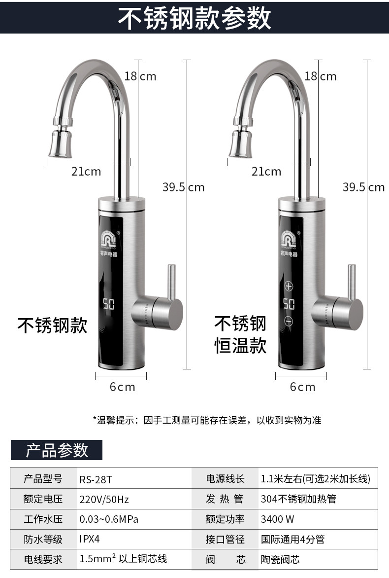 Rongsheng Electric Hot Water Faucet, Instant Heating Type, Kitchen Appliance, Bathroom Tap Water Heater, Hot and Cold Water Heater