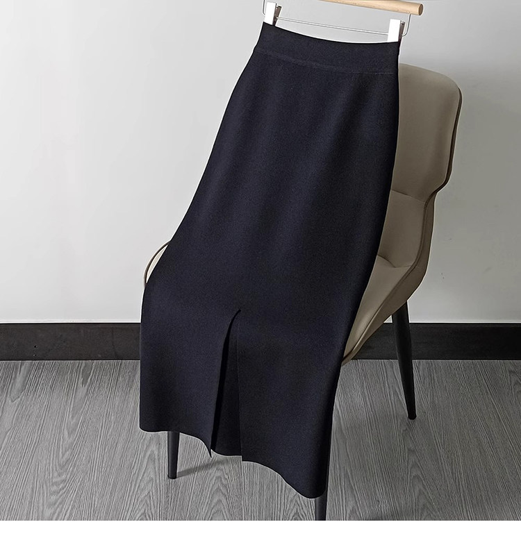 Autumn and Winter High-End Straight Slit Knitted Skirt for Women, French Style Back Slit, High Waist, Slimming, Elegant, Hip-Hugging Long Skirt