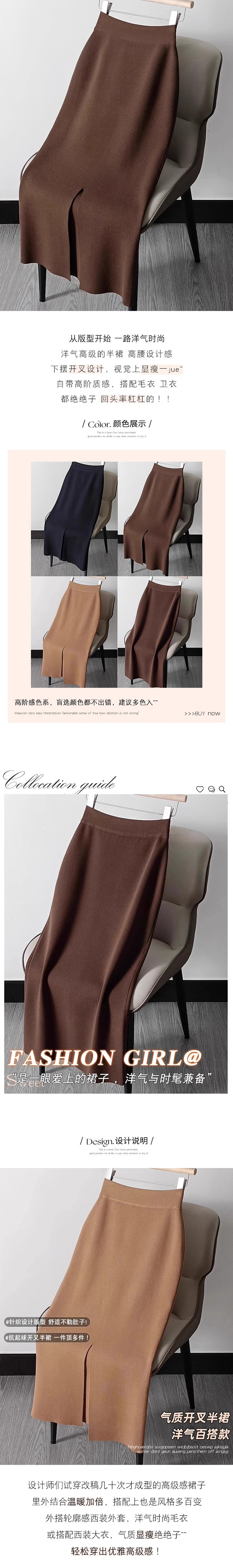 Color Classification Black[Autumn/Winter / Mid-Length / Premium / Trendy / Slim Fit / Women's / Knit / Vintage / Chic],Brown[Trending This Year: Midi/Swing Skirts with Slits, Slim-Fit, Bodycon, Autumn Fashion, Chic & Stylish],Light Camel[Slit/Skirt/Knitting/Silm/Popular/Autumn/Retro/Medium Length/Slimming Look]