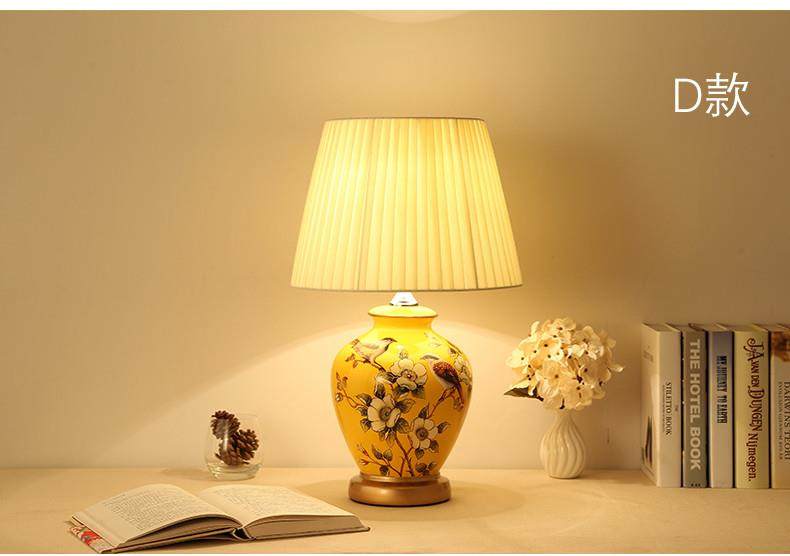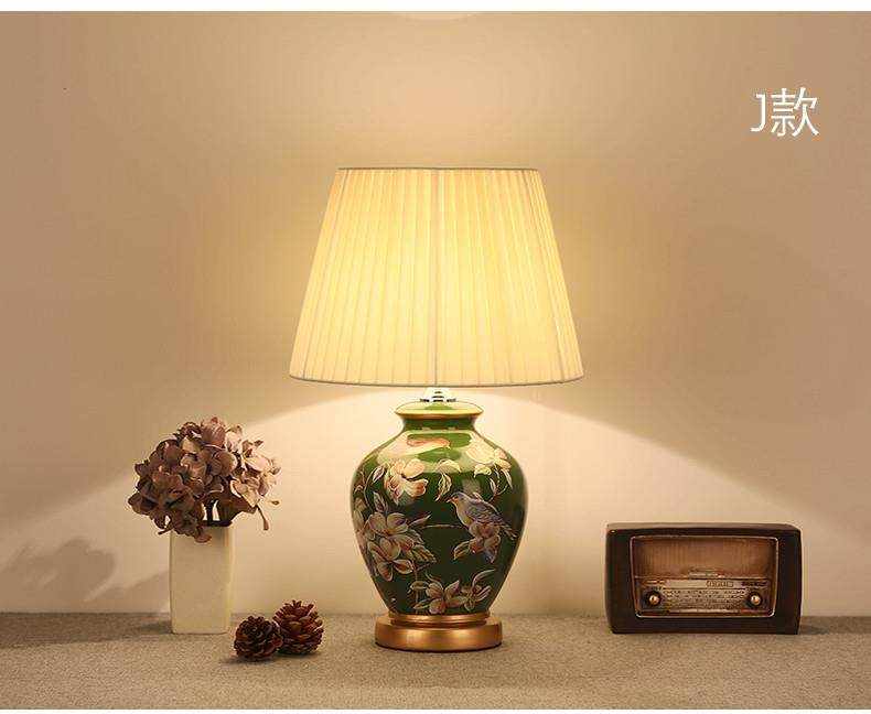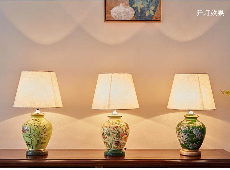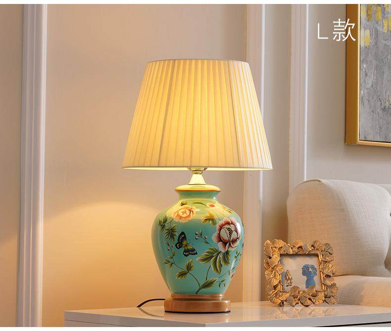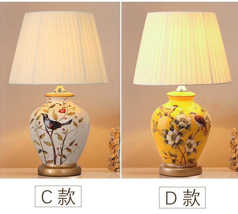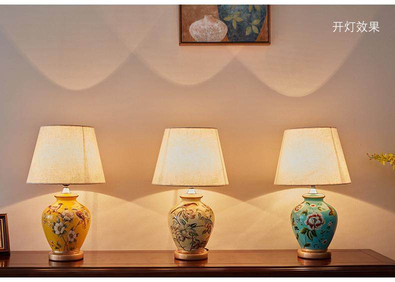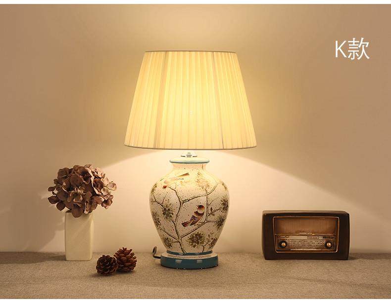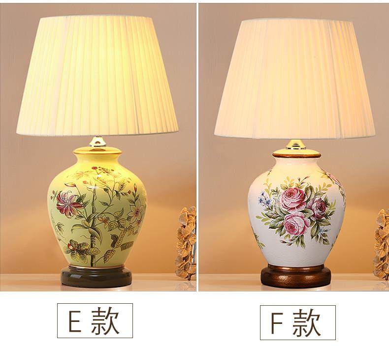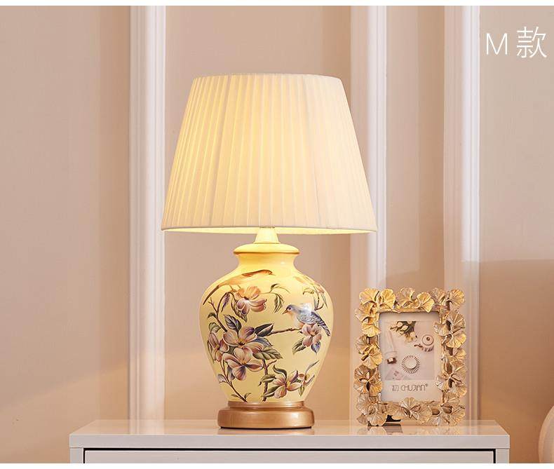 Table Lamp Bedroom Bedside Lamp Living Room American Retro New Chinese Style European Pastoral Warm Creative Remote Control Ceramic Table Lamp