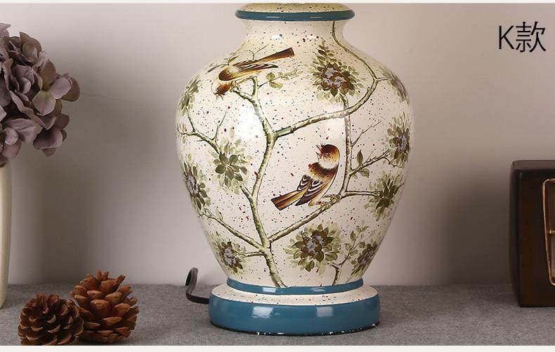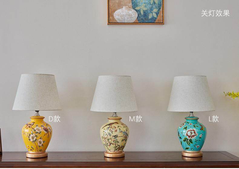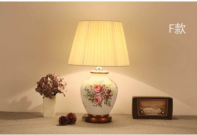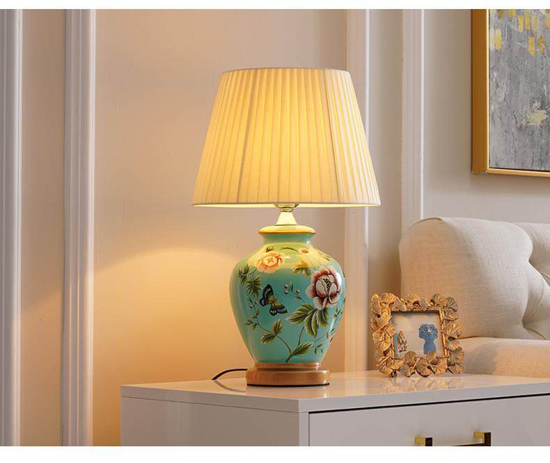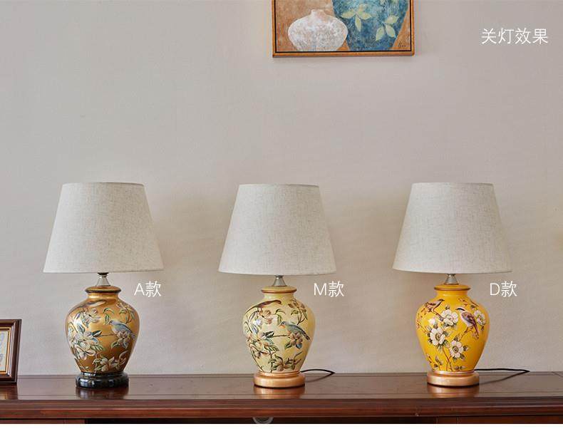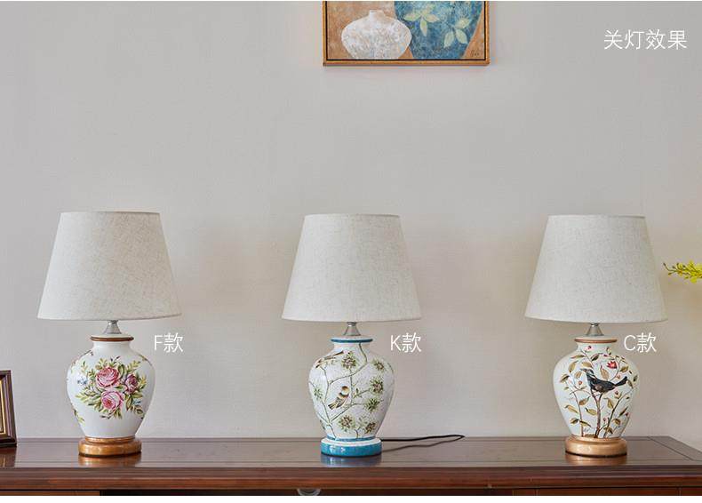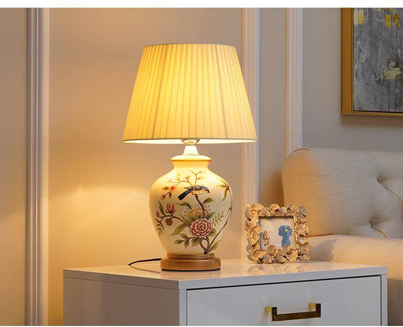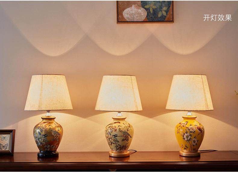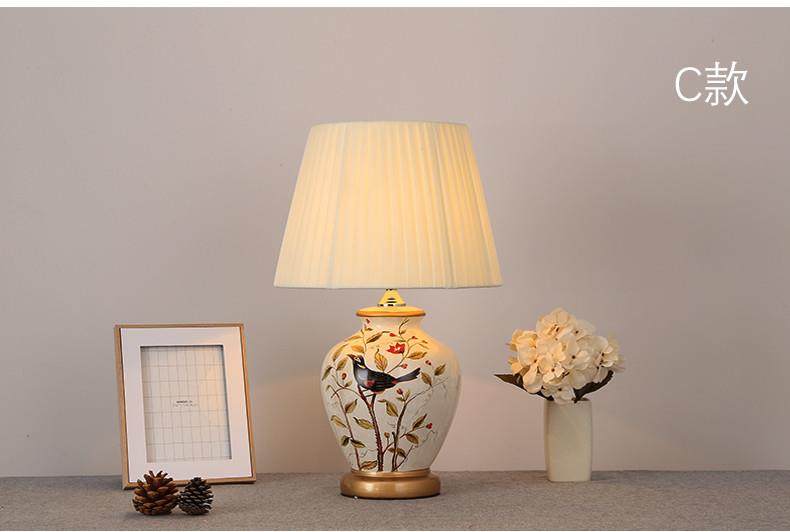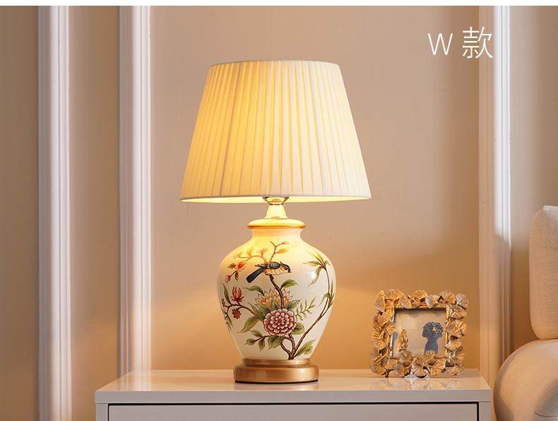 Table Lamp Bedroom Bedside Lamp Living Room American Retro New Chinese Style European Pastoral Warm Creative Remote Control Ceramic Table Lamp