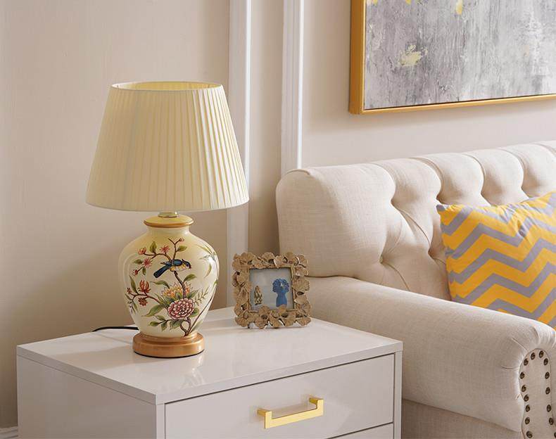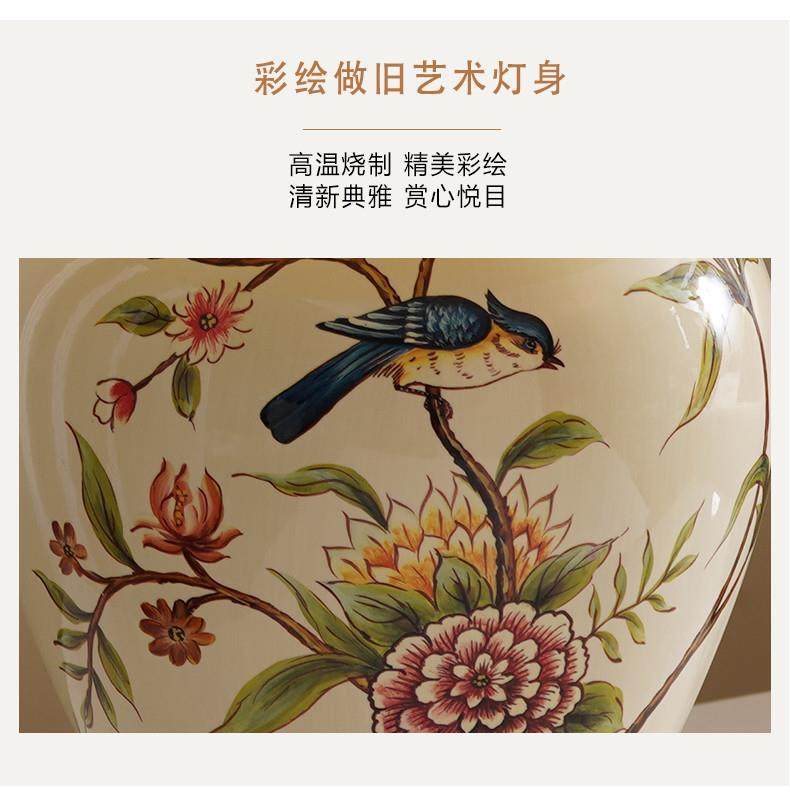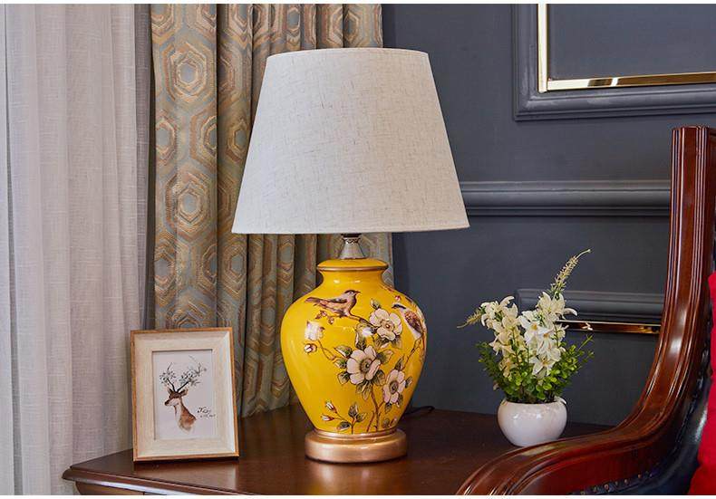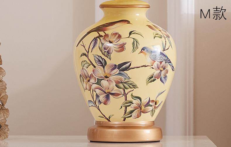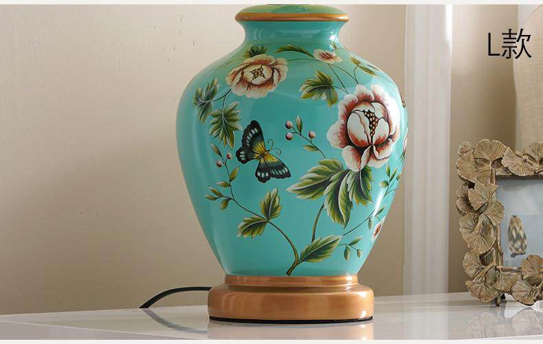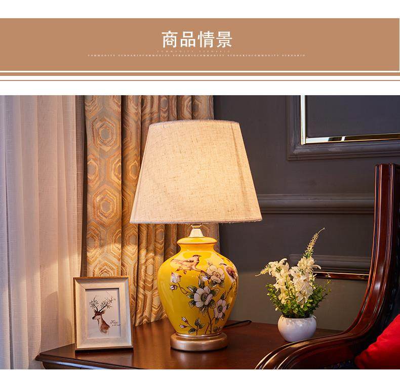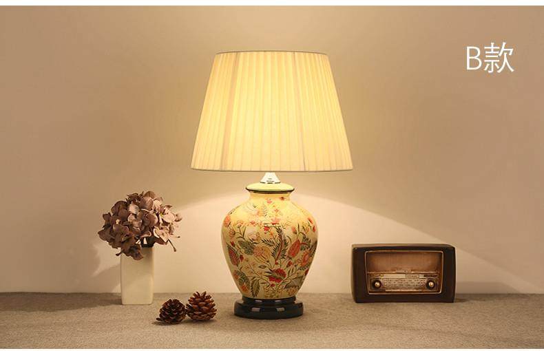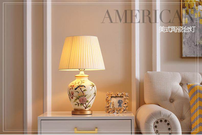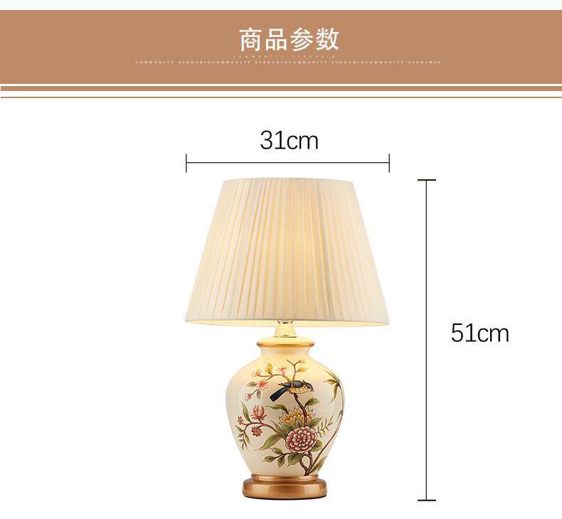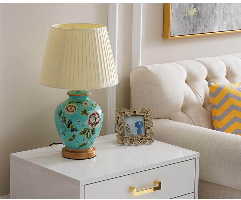 Table Lamp Bedroom Bedside Lamp Living Room American Retro New Chinese Style European Pastoral Warm Creative Remote Control Ceramic Table Lamp