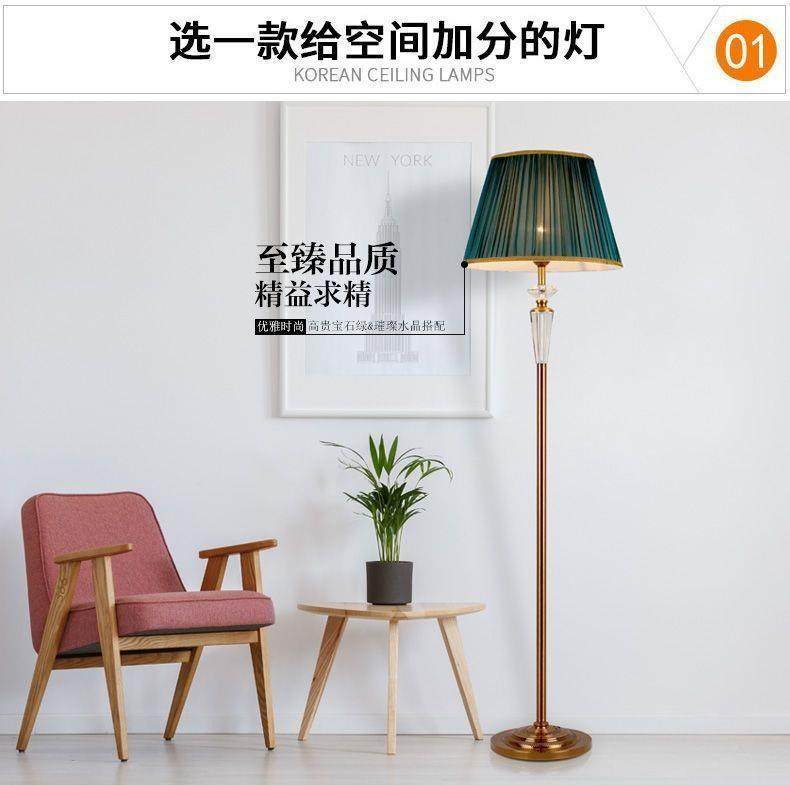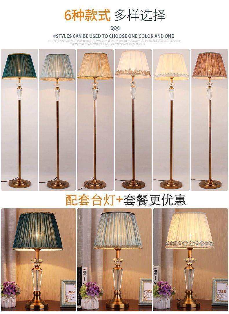 Vertical Living Room Study-Style Nordic Copper Floor-Standing Bedside Lamp American-Style Table Lamp Crystal Floor Lamp Bedroom Retro Light Luxury