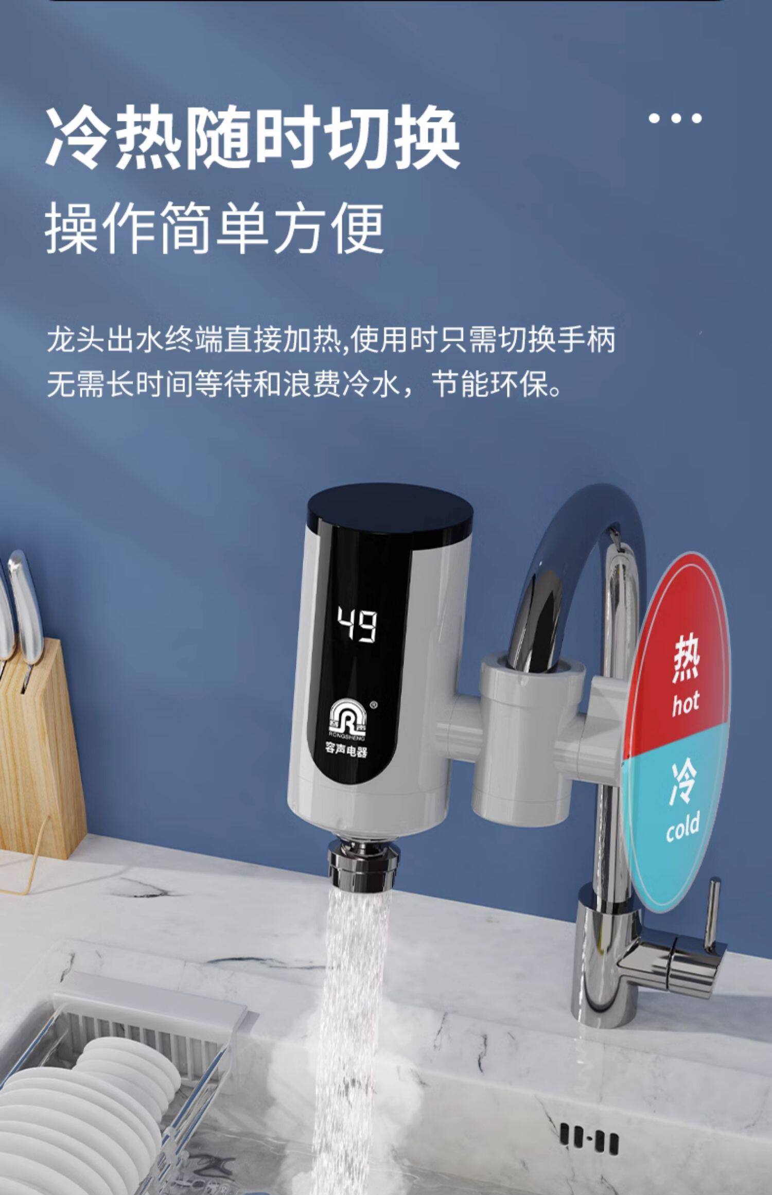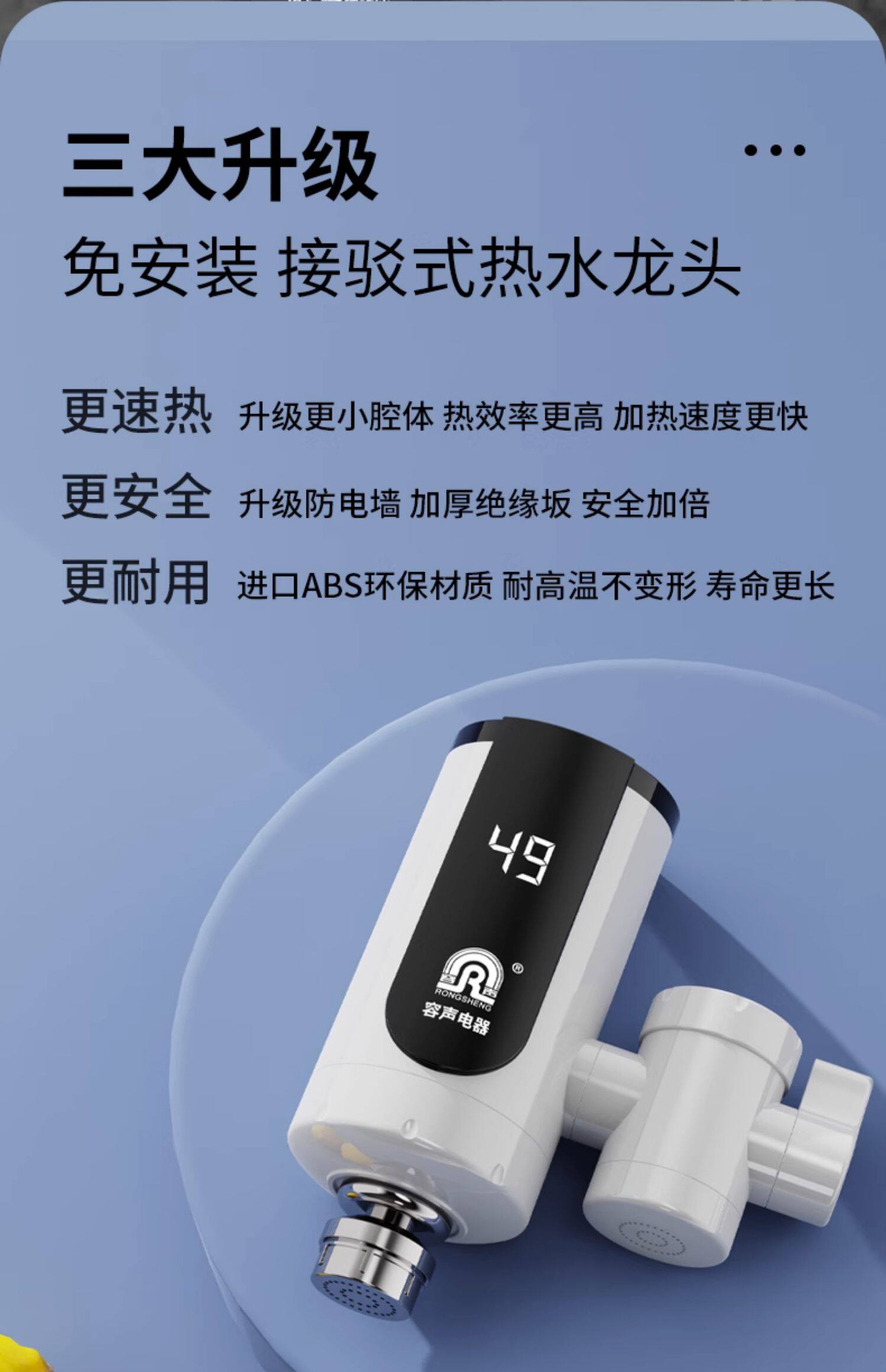 Rongsheng electric hot water faucet instant household installation-free kitchen bathroom overheating small electric water heater