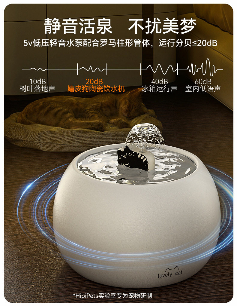 Automatic Cat Water Dispenser, Pet Ceramic Water Dispenser, Circulating Filtration, Dog Drinking Bowl, Large Capacity Water Feeder
