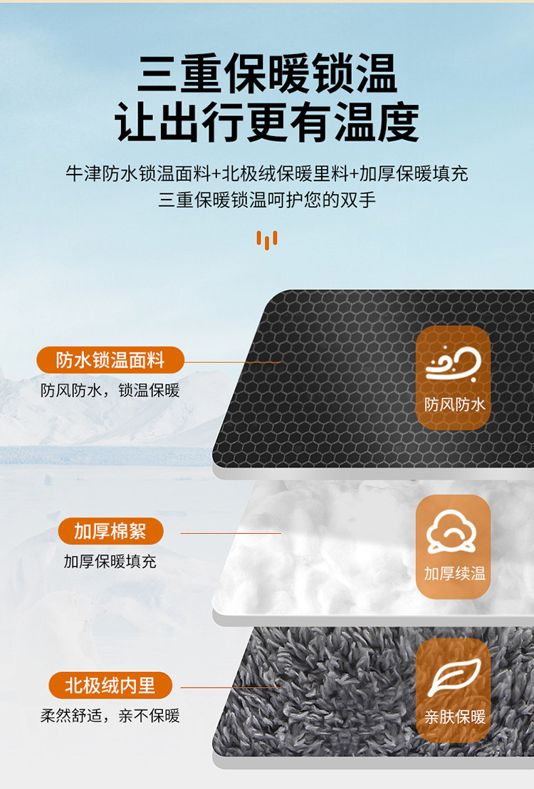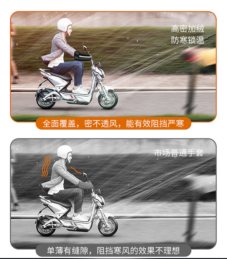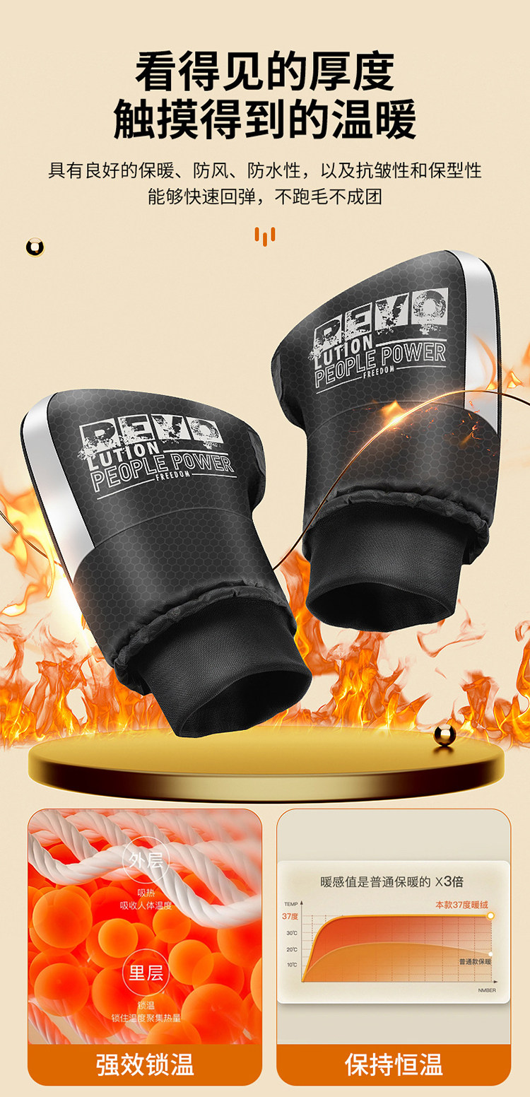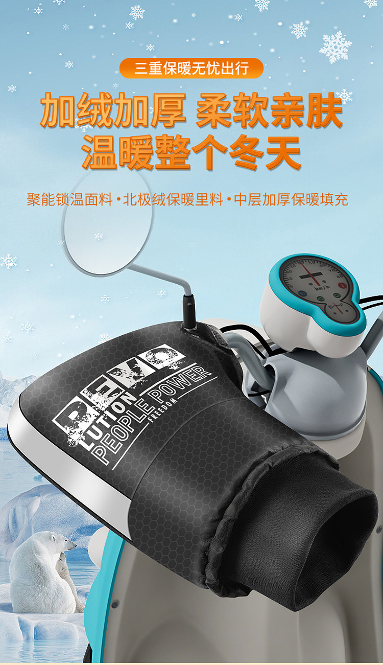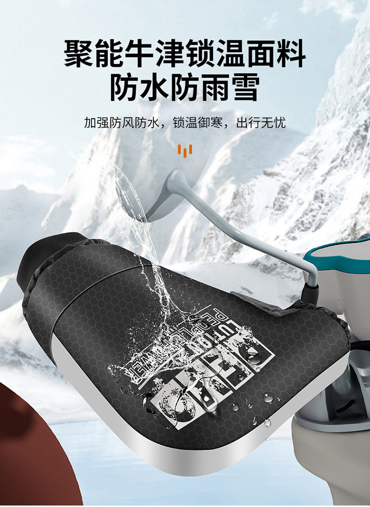 Electric Motorcycle Handlebar Covers, Winter Fleece-Lined Warm Gloves for Electric Bikes, Waterproof, Cold-Proof, Windproof Gloves, Cotton Handlebar Covers