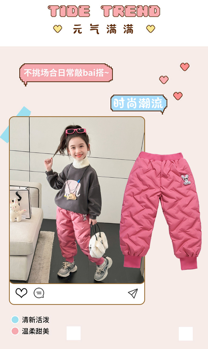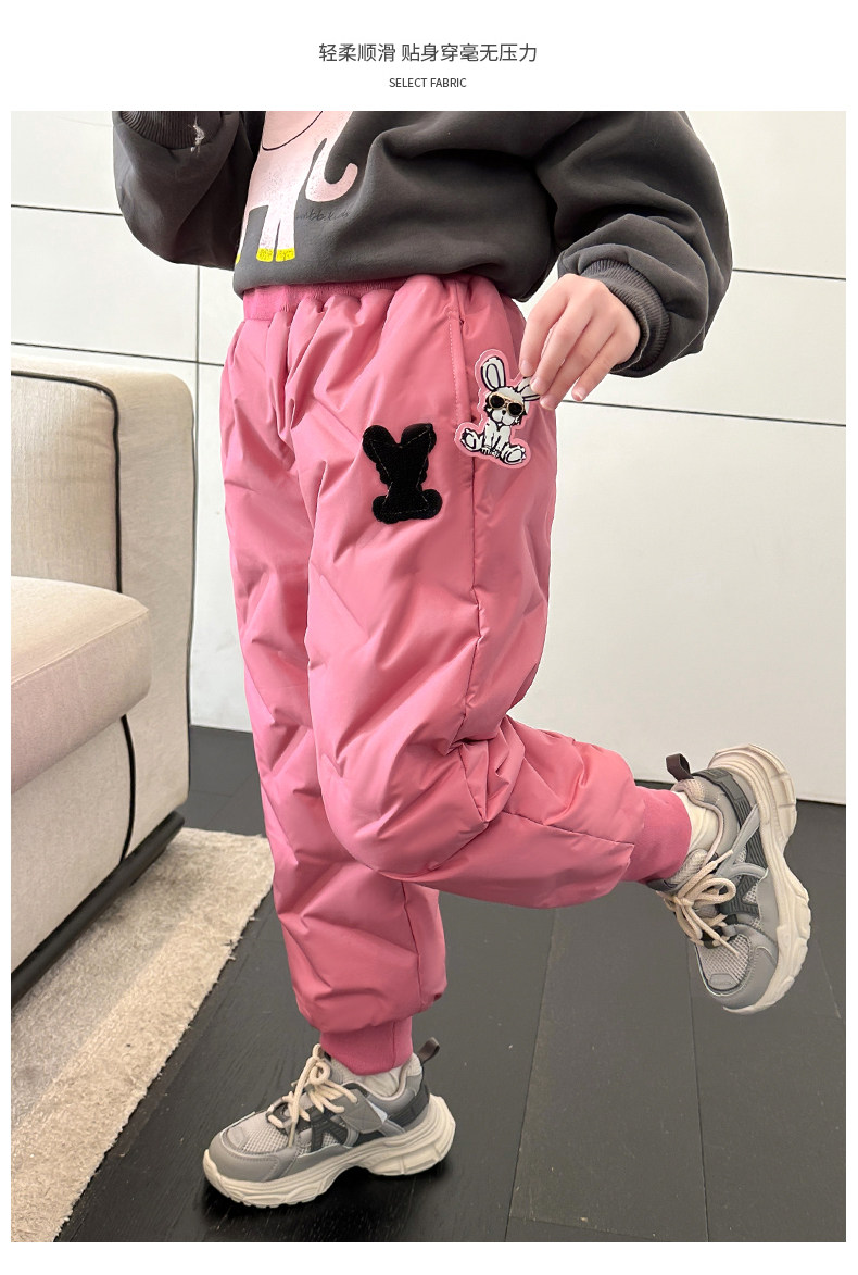 Girls' Thickened down Pants Autumn and Winter 2024 New Style Baby Girl Casual Pants Winter Wear Little Girl Warm Cotton Pants