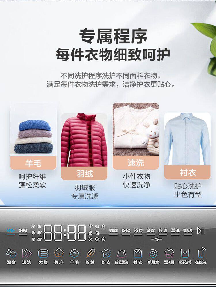 Laundry Program Mixed Wash,Smart Wash,Cotton and Linen Wash,Down Wash,Wool Wash