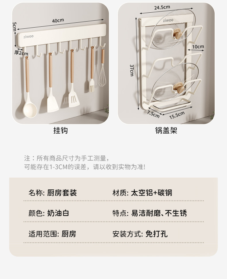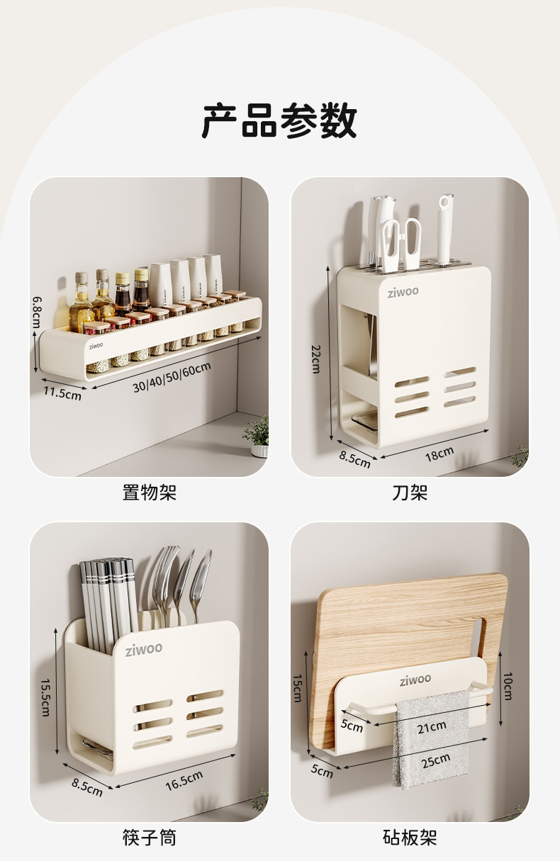 Color Classification [Milk White Zizwoo Co-Branded Design] 7-Piece Set (Spice Rack*2+Pot Lid Rack+Chopping Board Rack+Knife Holder+Chopstick Barrel+Hook Row),[Milk White Zizwoo Co-Branded Design] 6-Piece Set (Spice Rack*2+Pot Lid Rack+Chopping Board Rack+Knife Holder+Chopstick Barrel),[Milk White Zizwoo Co-Branded Design] 5-Piece Set a (Seasoning Rack*2+Pot Lid Rack+Chopping Board Rack+Row Hook),[Milk White Zizwoo Co-Branded Design] 5-Piece Set B (Seasoning Rack*2+Chopstick Holder+Knife Holder+Row Hook),[Milk White Zizwoo Co-Branded Design] 4-Piece Set a (Seasoning Rack*2+Pot Lid Rack+Chopping Board Rack),[Milk White Zizwoo Co-Branded Design] 4-Piece Set B (Seasoning Rack*2+Chopstick Holder+Knife Holder),[Milk White Zizwoo Co-Branded Design] 4-Piece Set C (Knife Holder + Chopstick Holder + Pot Lid Holder + Chopping Board Holder),[Milk White Zizwoo Co-Branded Design] Single-Layer Seasoning Rack 30cm [Removable],[Milk White Zizwoo Co-Branded Design] Single-Layer Seasoning Rack 40cm [Removable],[Milk White Zizwoo Co-Branded Design] Single-Layer Seasoning Rack 50cm [Removable],[Milk White Zizwoo Co-Branded Design] Single-Layer Seasoning Rack 60cm [Removable],[Milk White Zizwoo Co-Branded Design] Double-Layer Seasoning Rack 30cm [Removable],[Milk White Zizwoo Co-Branded Design] Double-Layer Seasoning Rack 40cm [Removable],[Milk White Zizwoo Co-Branded Design] Double-Layer Seasoning Rack 50cm [Removable,[Milk White Zizwoo Co-Branded Design] Double-Layer Seasoning Rack 60cm [Removable],[Milk White Zizwoo Co-Branded Design] Pot Lid Holder [Removable],[Milk White Zizwoo Co-Branded Design] Chopstick Holder [Removable],[Milk White Zizwoo Co-Branded Design] Knife Holder [Removable],[Milk White Zizwoo Co-Branded Design] Chopping Board Rack [Removable],[Milk White Zizwoo Co-Branded Design] 40cm Row Hook,[Milk White Zizwoo Co-Branded Design] Rotating Hook 10 Hooks (Wall Hanging Model),[Milk White Zizwoo Co-Branded Design] Rotating Hook 10 Hooks (Cabinet Bottom Model)