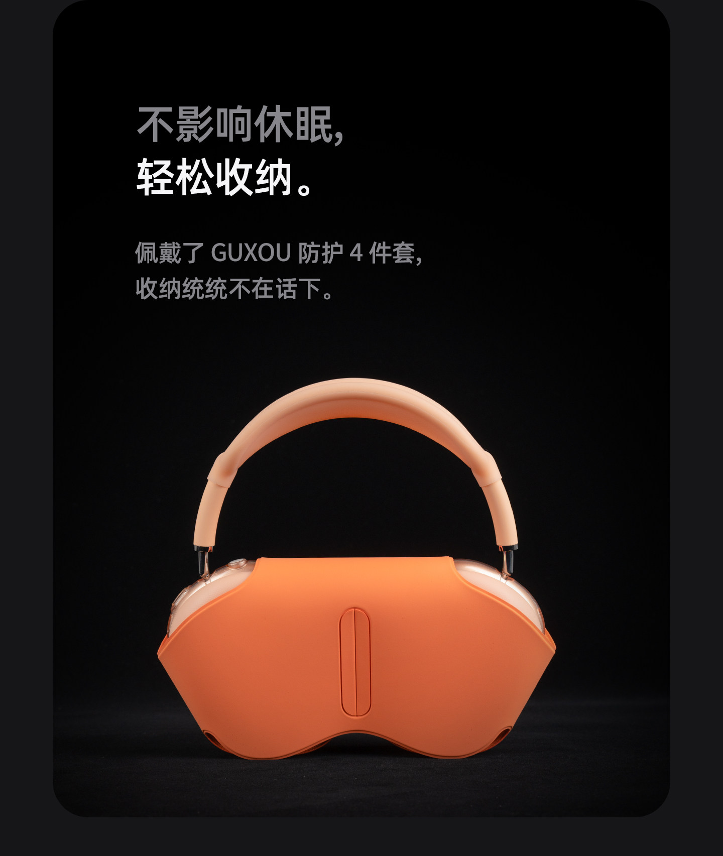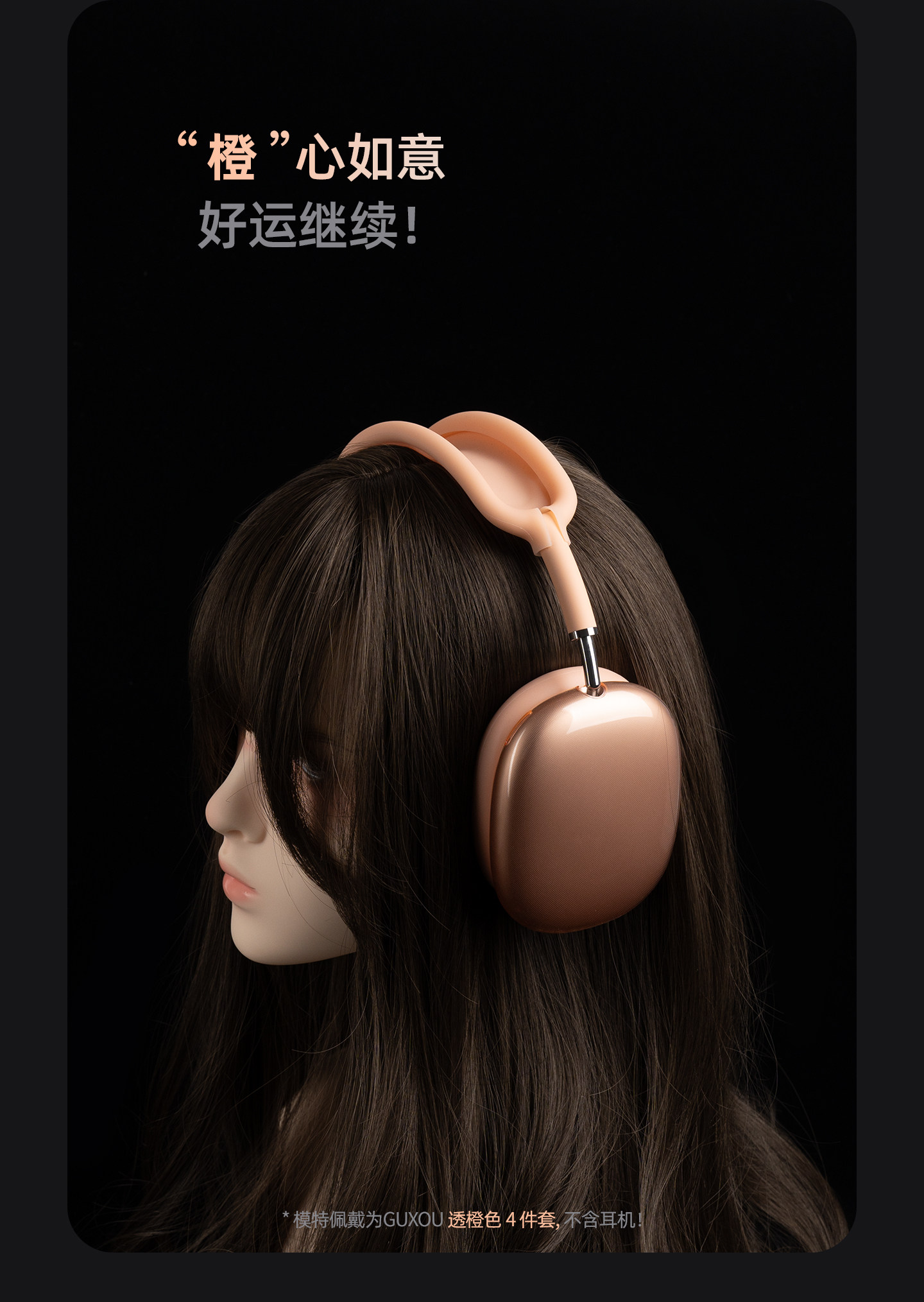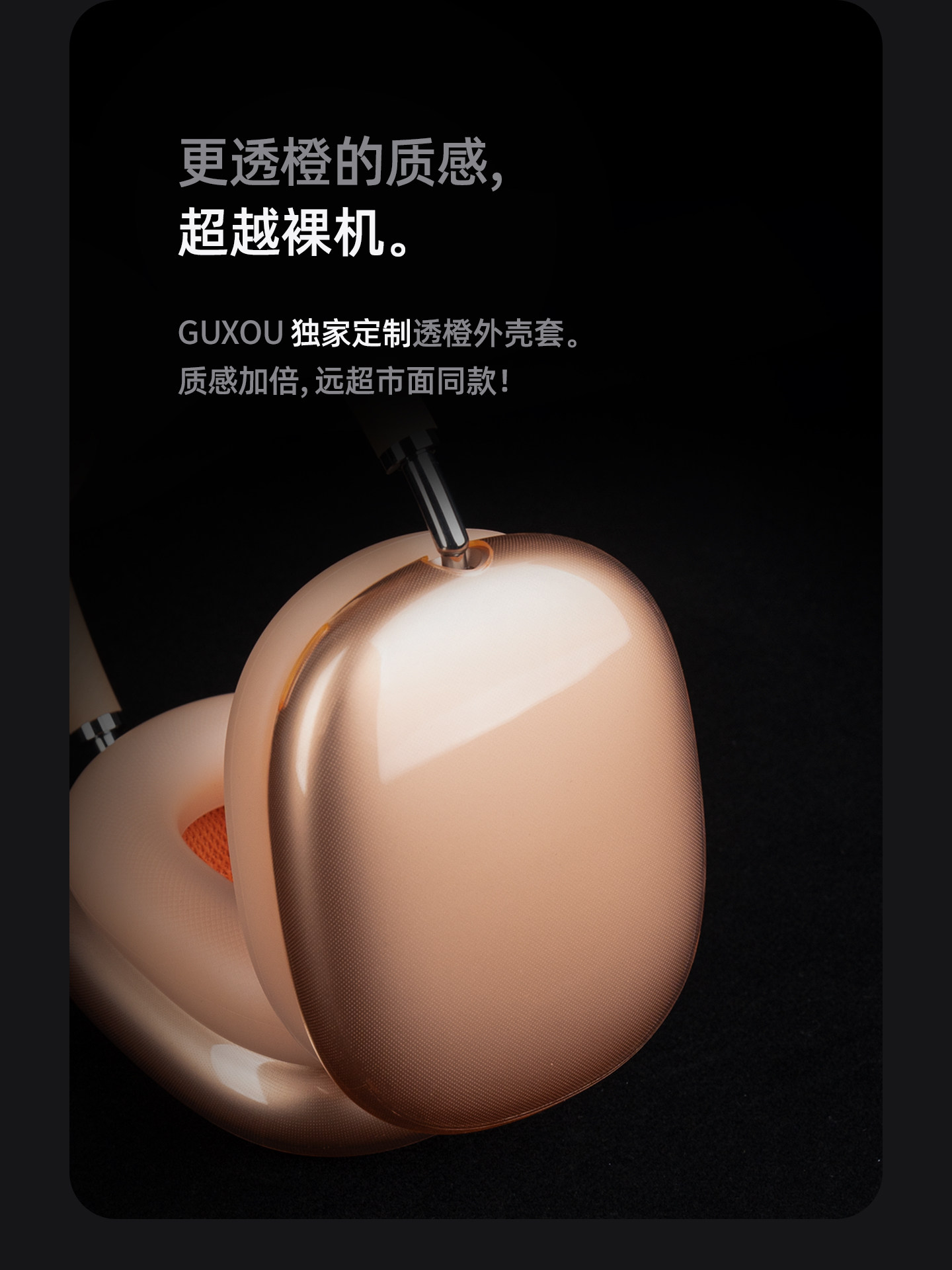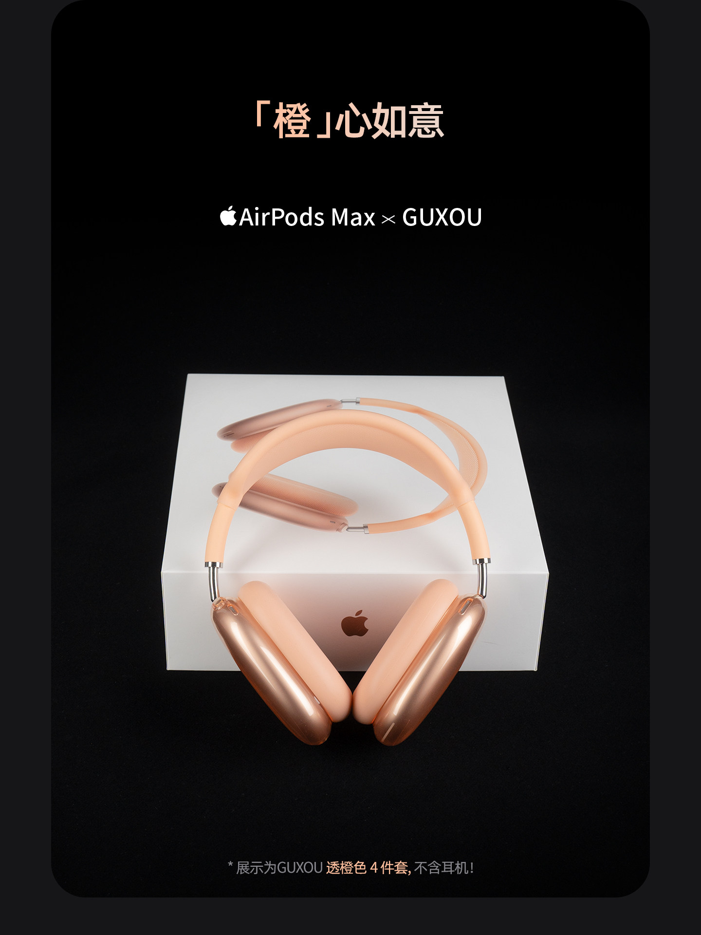 [Guxou New Model]Suitable for AirPods Max 2 Transparent Orange Protective Case Earcup Cover Apple Over-Ear Headphones Max Horizontal Headband Storage Bag Apm Protective Shell Silicone Protective Accessories Set