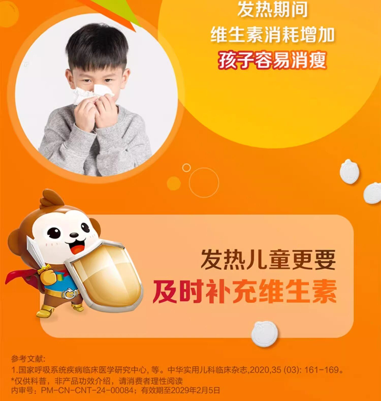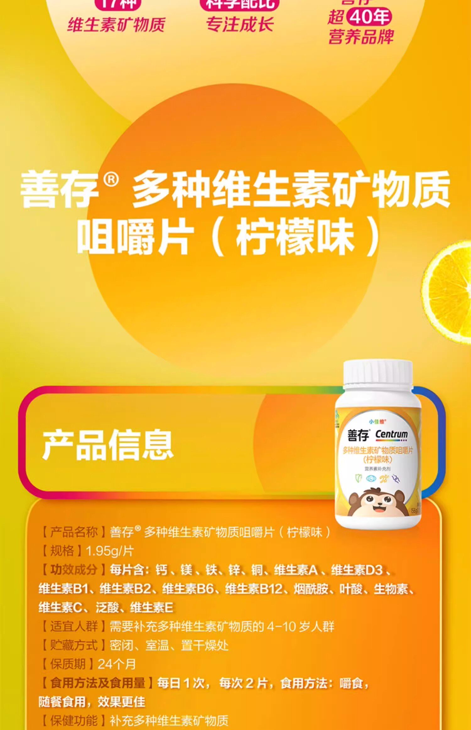 Sencun Xiaojiaowei Kidsren's Multivitamin Complex Tablets for Students, B-Complex, Vc, Chewable Vitamin C, Lemon Flavor