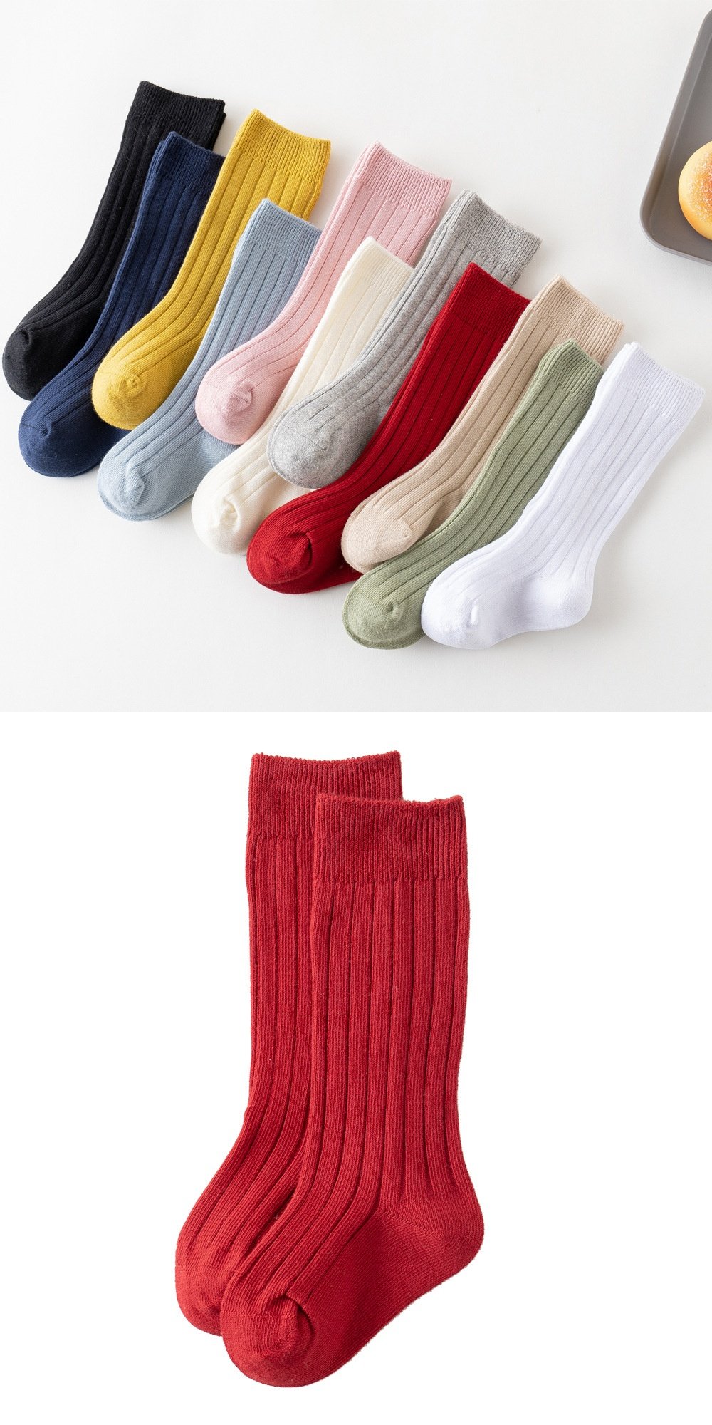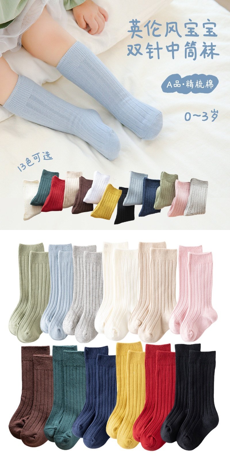 Baby socks spring and autumn new Spanish double-needle pit strips for men and women baby knee-length socks baby stockings 13 colors