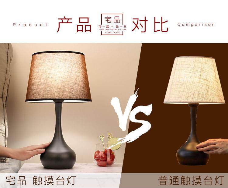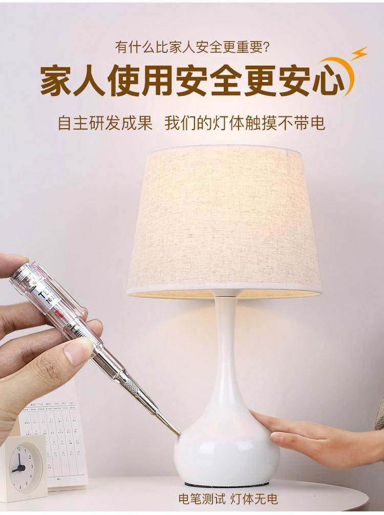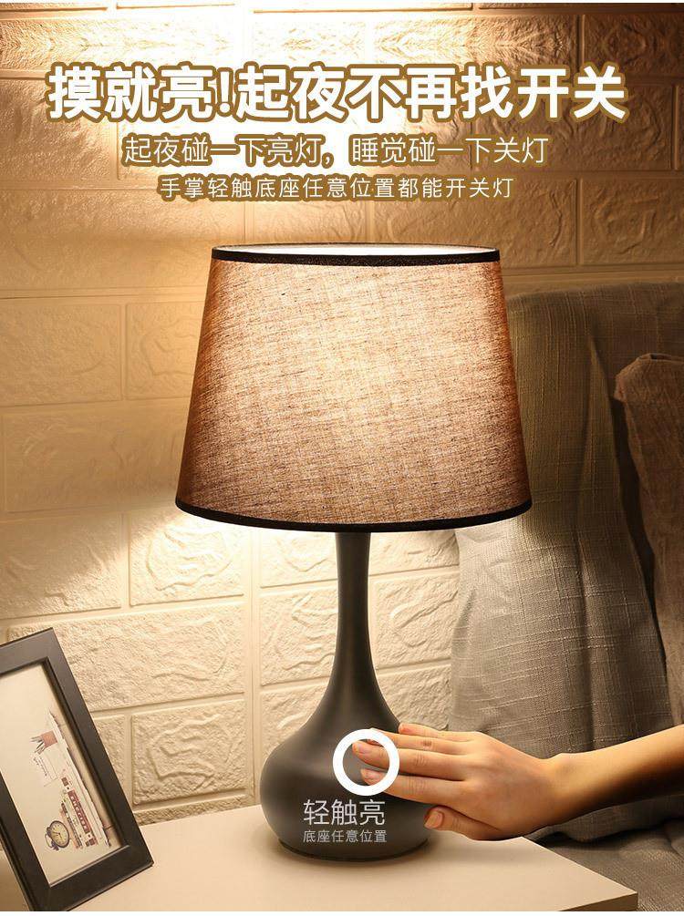 American-Style Table Lamp Bedside Lamp for Bedroom, Simple Modern Sensor Lamp, Cozy Nordic Table Lamp, Dimmable Touch Control