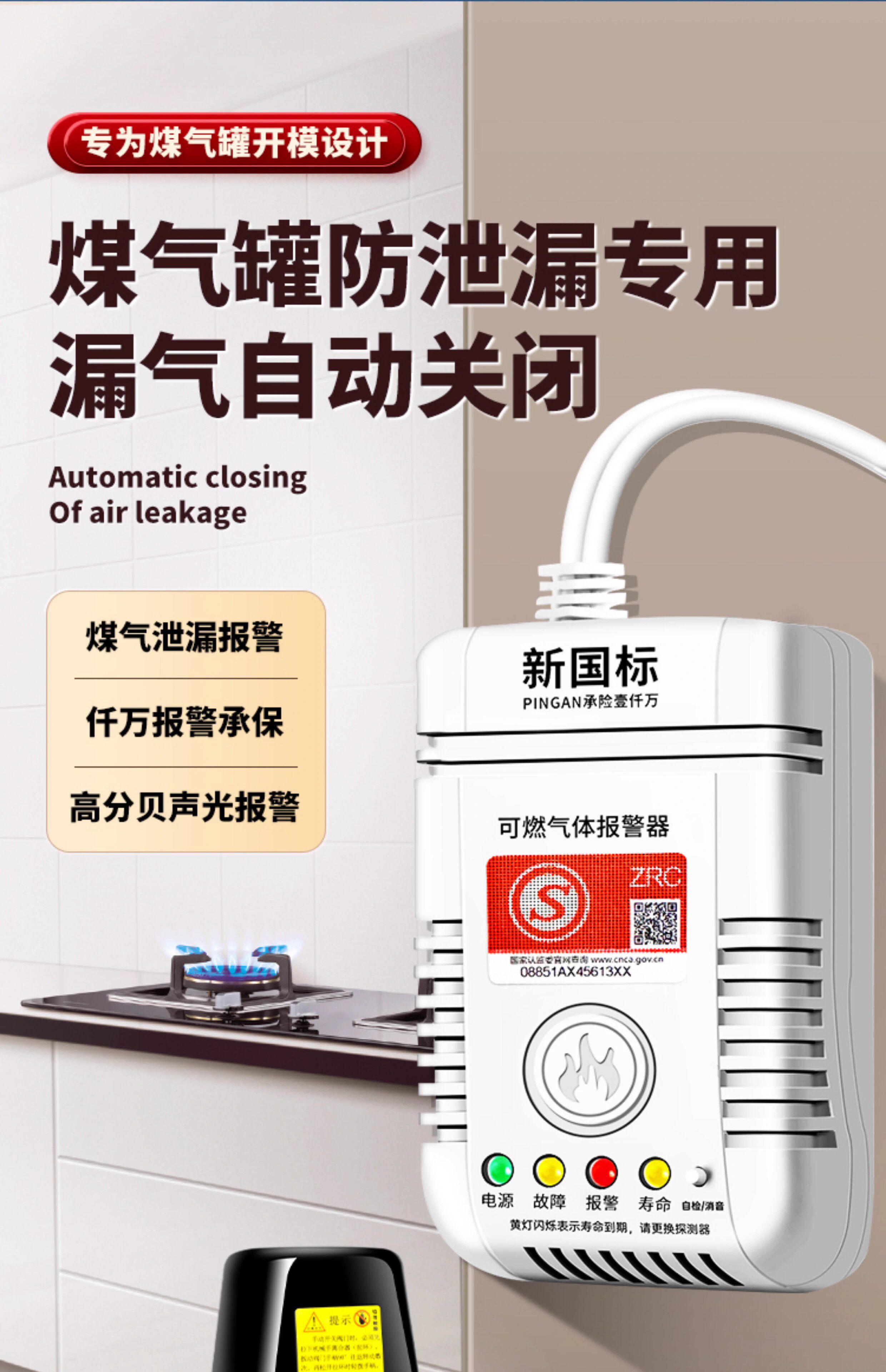 Natural Gas Alarm Household Gas Leak Automatic Shut-Off Valve Kitchen Combustible Gas Leak Electromagnetic Valve