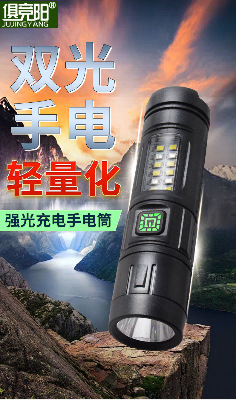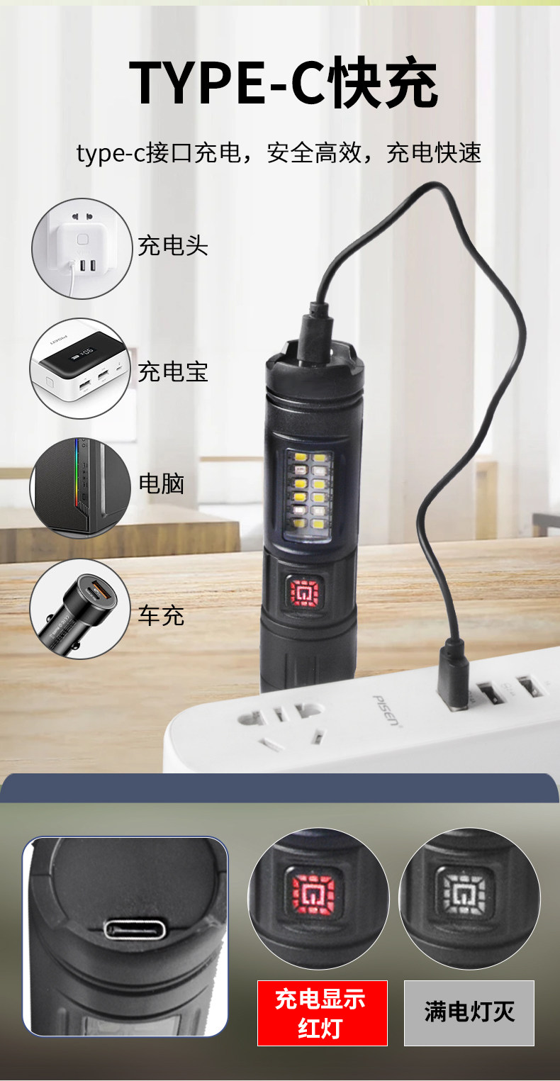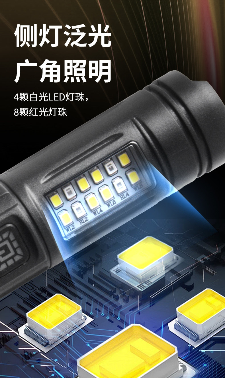Red and White Dual Light Source Rechargeable Flashlight for Outdoor Camping, Tunnel Work, Ultra-Bright Long-Range Auto Repair Outdoor Lighting