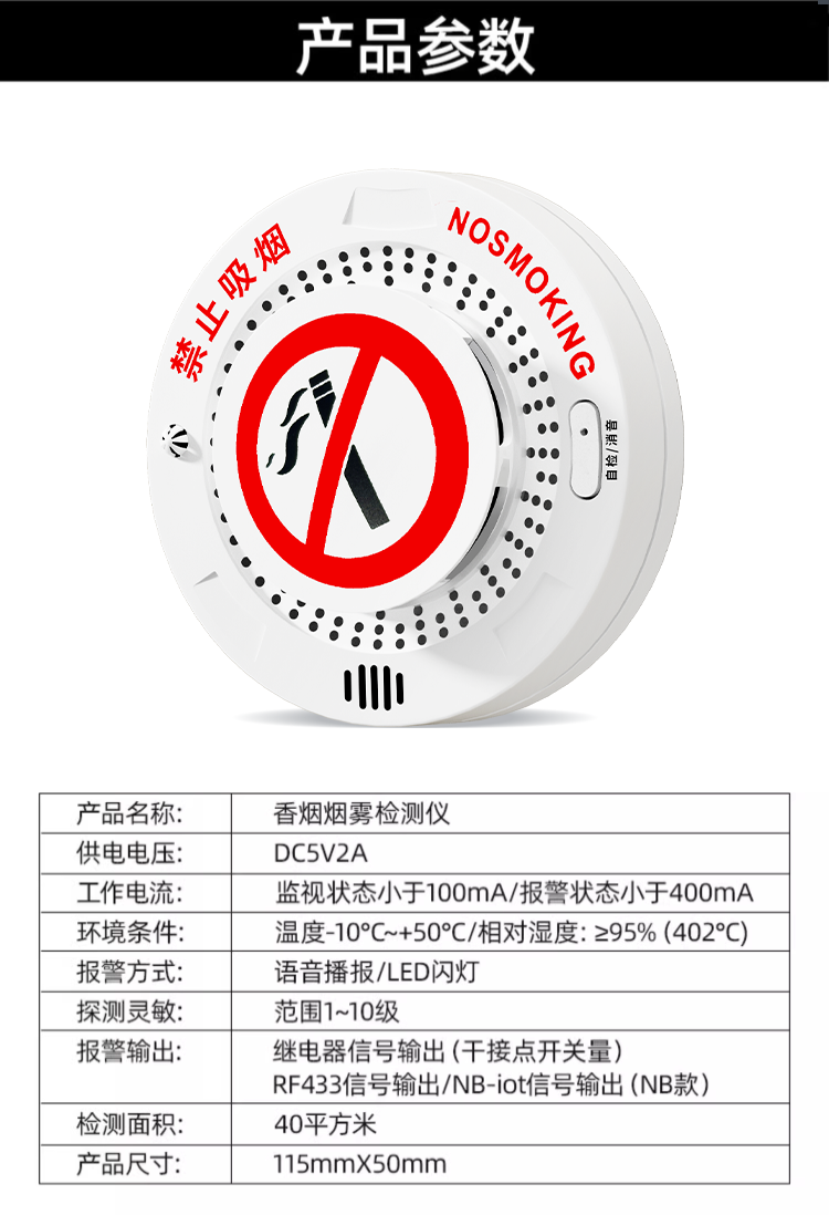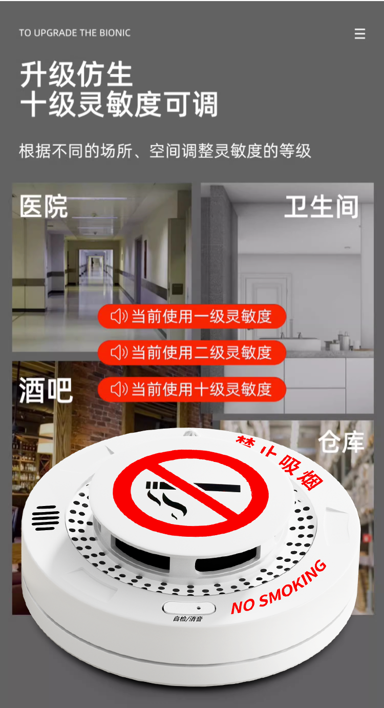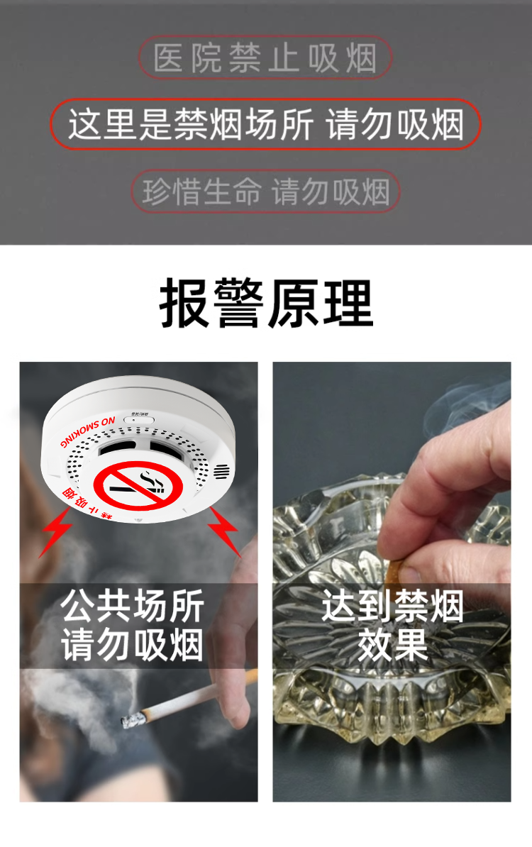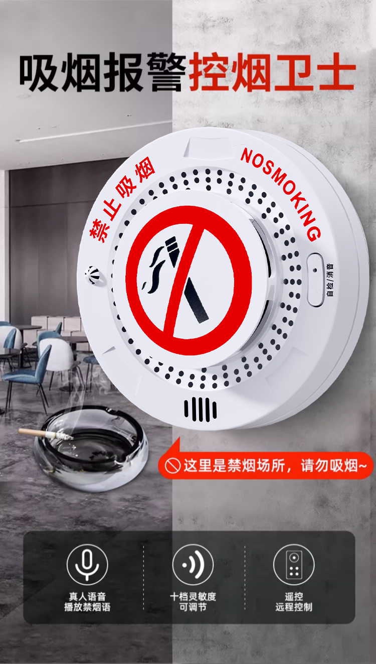 No-Smoking and Anti-Smoking Guard Smoking Alarm Warehouse High-Sensitivity Detection Toilet Smoking Cigarette Smoke Detector