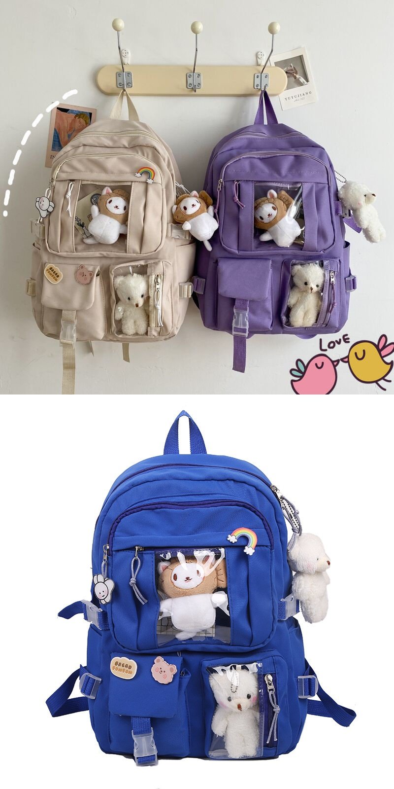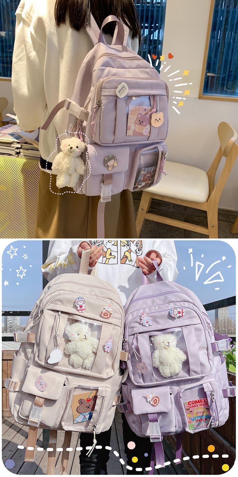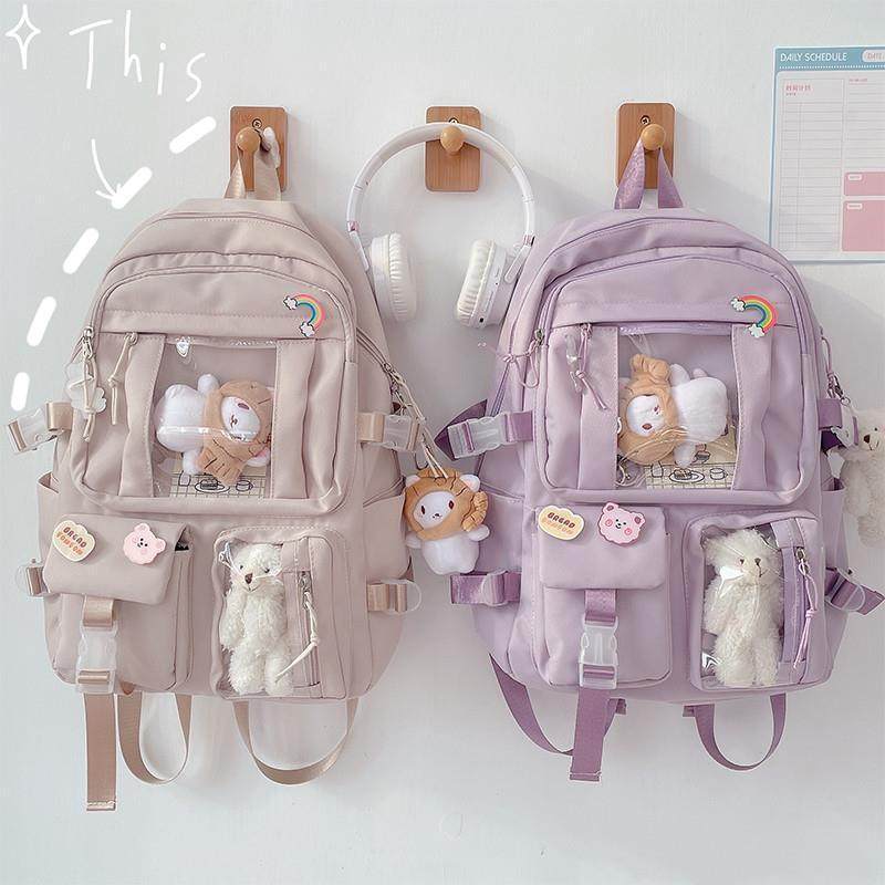 School Bag for Junior High School Girls, Transparent Layered Backpack, Trendy Large-Capacity High School Student Backpack, Stylish Small Shoulder Bag