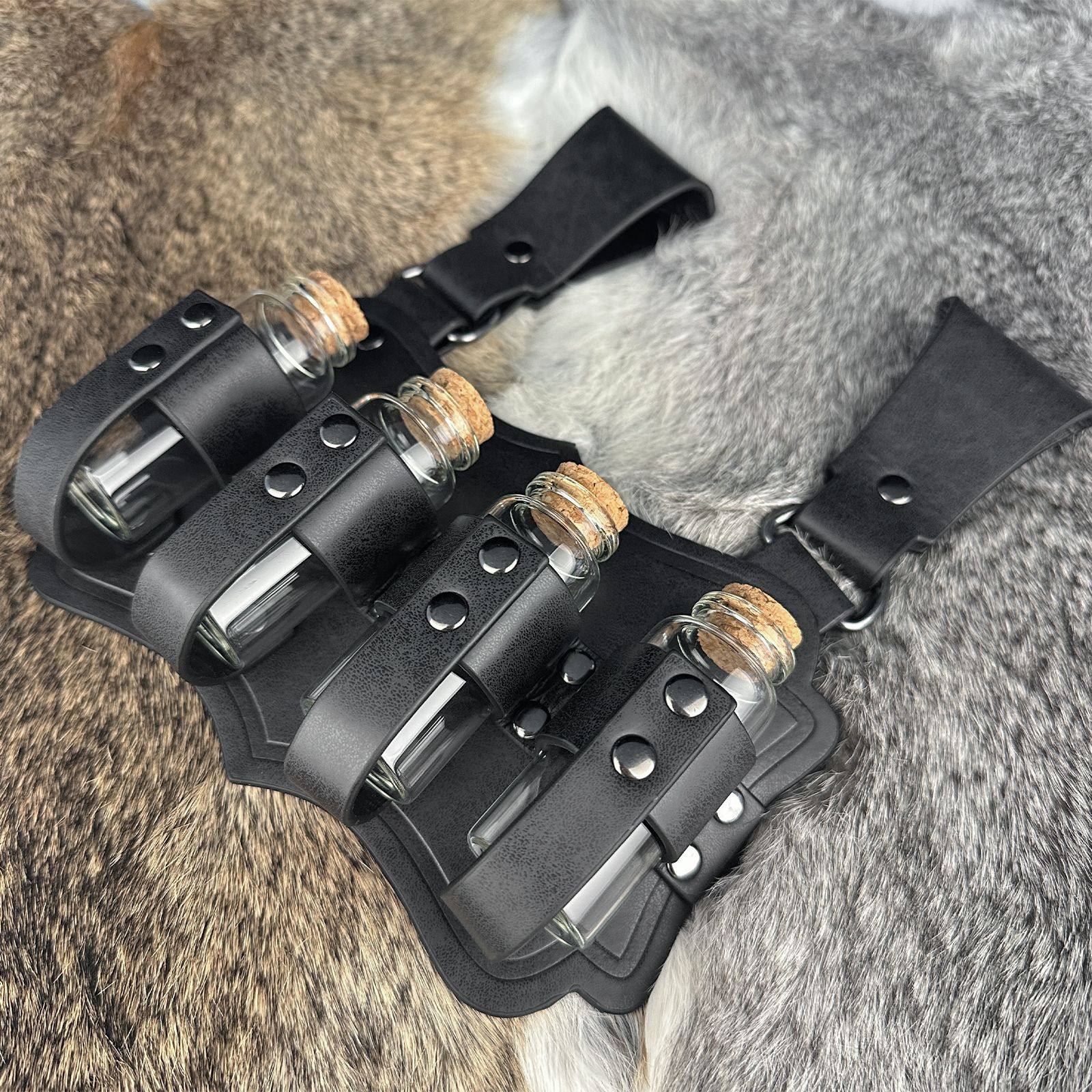 Medieval alchemy four bottles belt belt potion bottle Nordic Viking style retro cos stage performance props