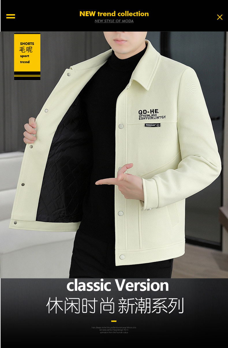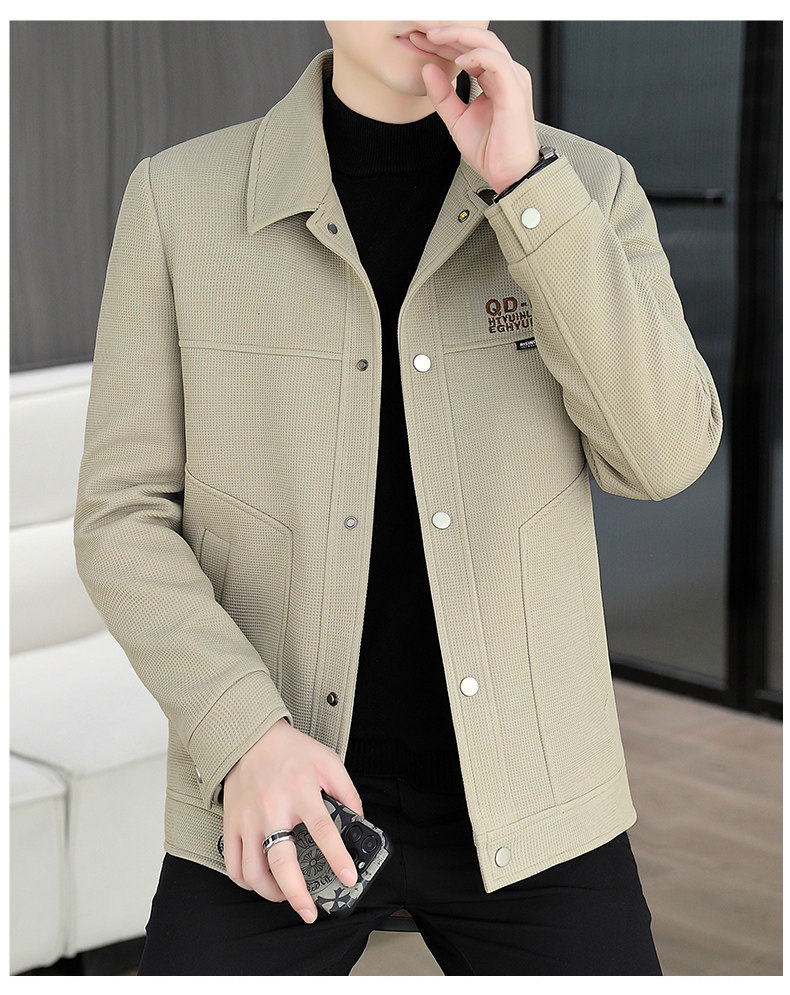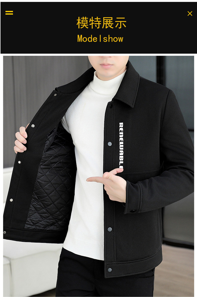 Color-Blocked Patchwork Jacket for Men, Autumn and Winter, Turn-Down Collar Workwear Jacket, Trendy Brand, Youth Style, Padded and Thickened, Korean Style Slim Fit Coat