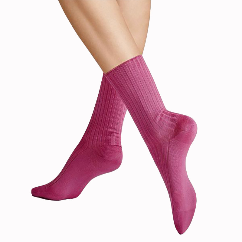 Snugli German Imported Hudson Rib Soft Glossy Striped Ribbed Candy-Colored Fashionable Mid-Calf Women's Socks