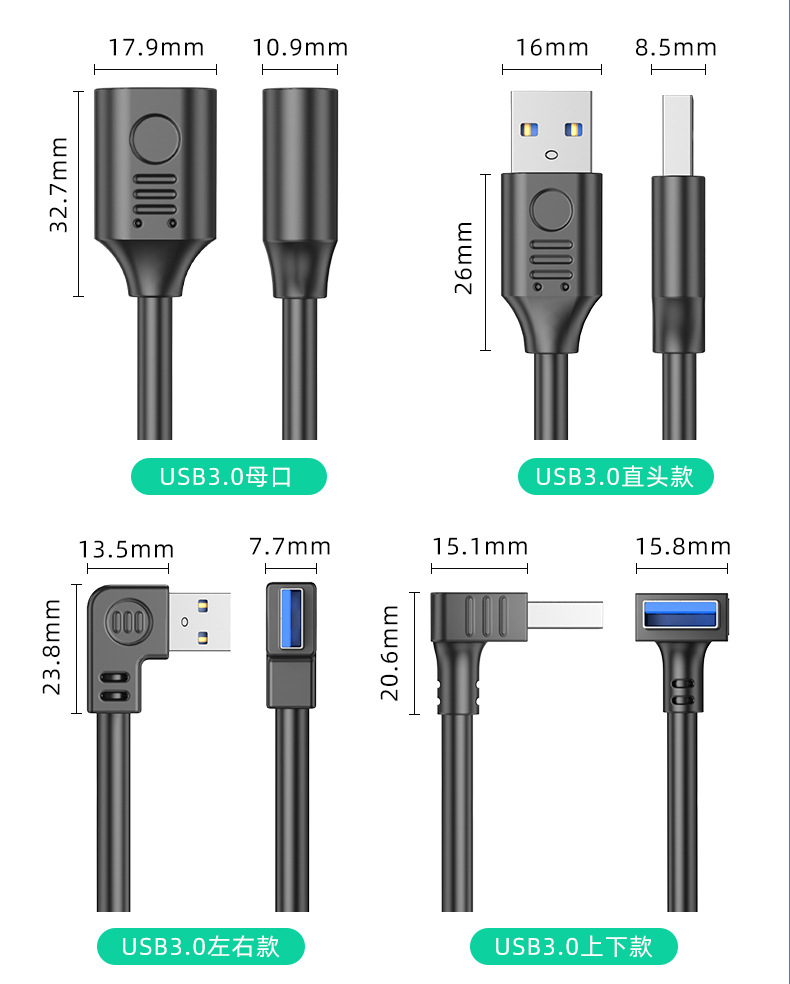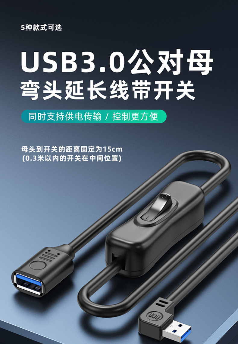 Pulu USB 3.0 Extension Cable with Switch, Male to Female, for Small Fans, Desk Lamps, Dash Cams, Data and Power Supply, 90-Degree High-Speed Right-Angle Up/Down/Left/Right Turn Head, Supports Data and Power Supply Extension