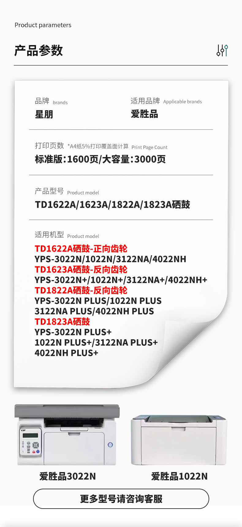 Suitable for iShengpin Yingpuson 1022N toner cartridge ICSP YPS-3022N 3122NA 4022NH 3022N PLUS + printer toner cartridge TD1622A 1822A Xingpeng 3509