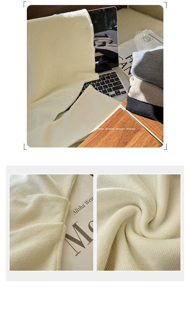 White Half-High Collar Knitted Base Shirt for Women, Suitable for Spring, Autumn, and Winter, Super Stylish with Irregular Hem, Slit, and Ruched Design