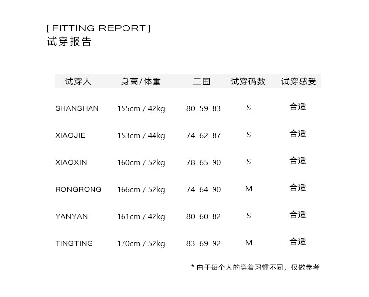 China (cm) 160-165/84-86 165-170 / 88-90 167-172 / 92-96 168-173 / 98-102 170-176 / 106-110