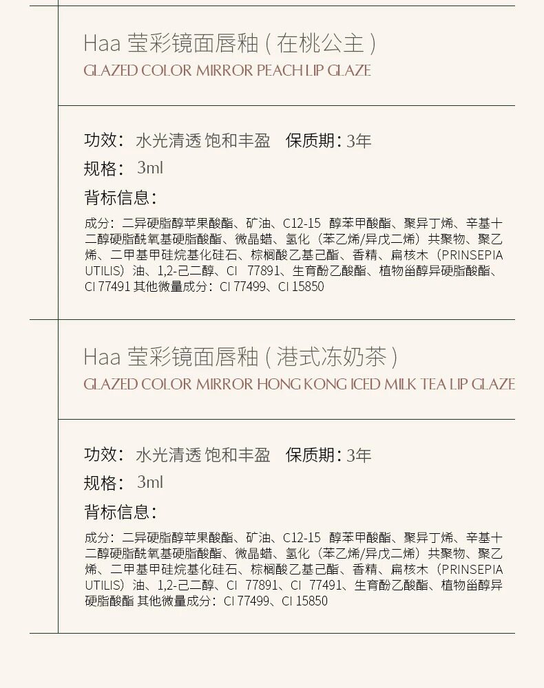 Product Name Haa Yingcai Mirror Lip Glaze (at Peach Princess)