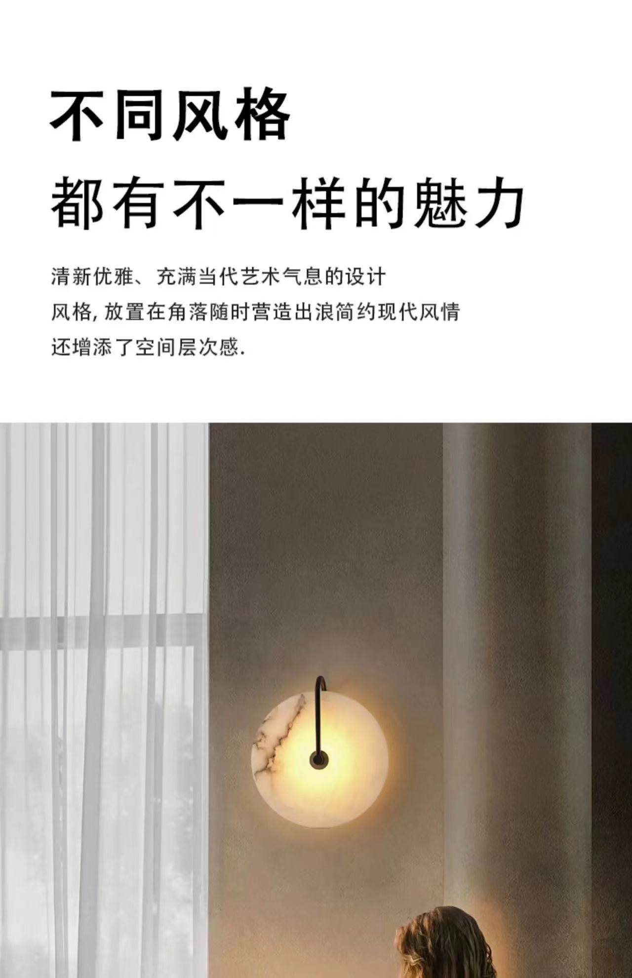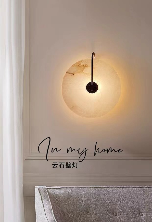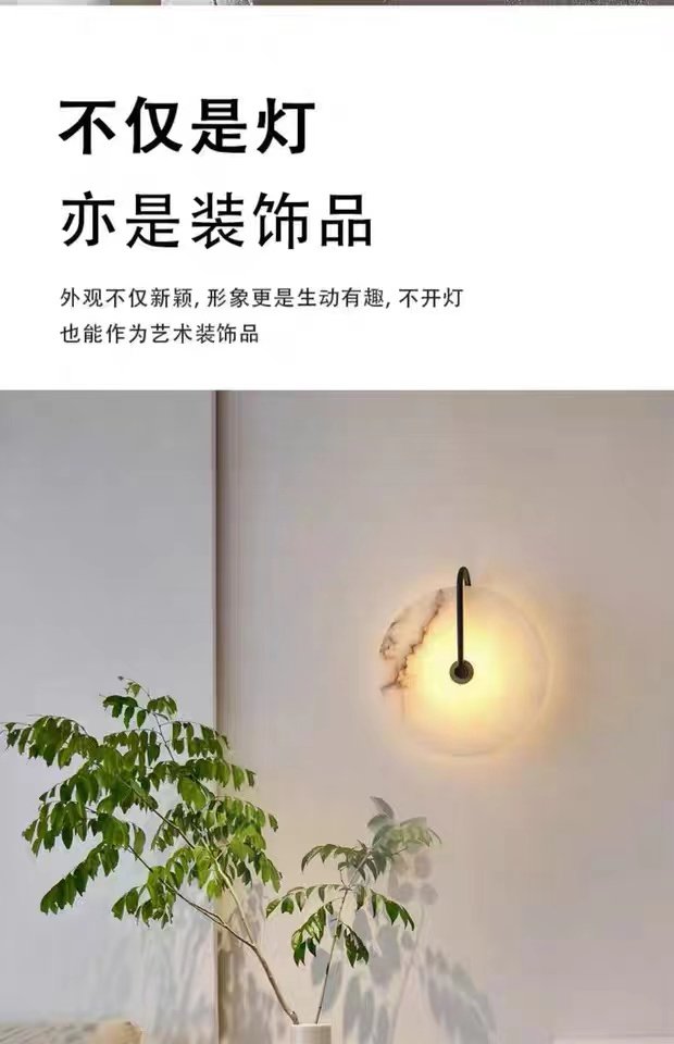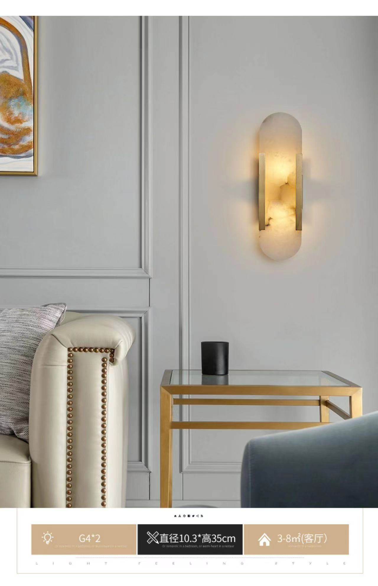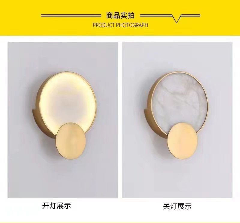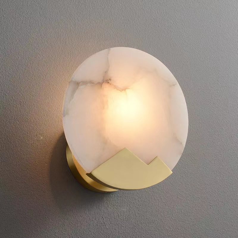 Marble Wall Lamp for Bedroom Bedside, Full Spectrum Eye-Protection Wall Light, All-Copper Sofa Background Wall Corridor Vintage Aisle Light