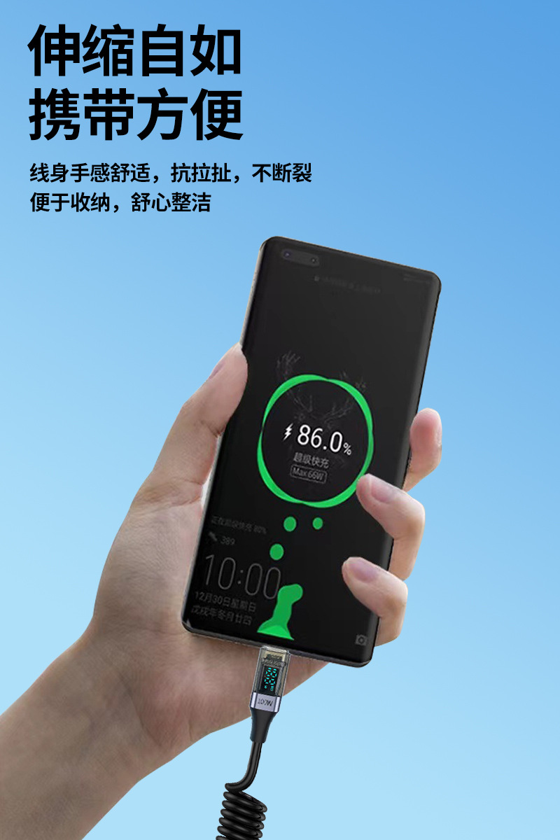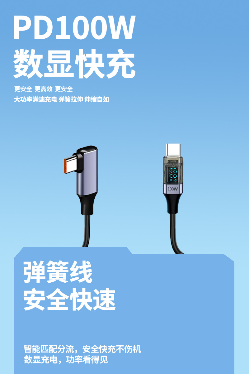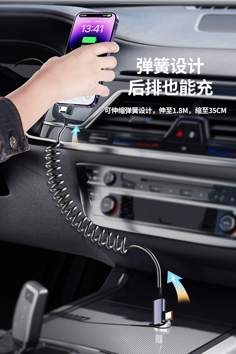 100W Super Fast Charging Dual Type-C Spring Retractable Data Cable with Smart Digital Display Usb, Suitable for Huawei Mate60 Flash Charging, Android iPhone 15 /16 Elbow Charger, Dual-Head Tpc Mobile Phone Charger