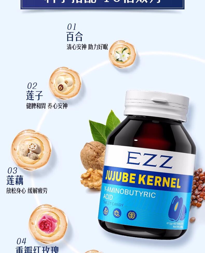 Ezz Jujube Seed, Poria, Lily, Aminobutyric Acid, Non-Melatonin Γ Ampoule to Aid Sleep, Improve Insomnia, and Promote a Peaceful Sleep