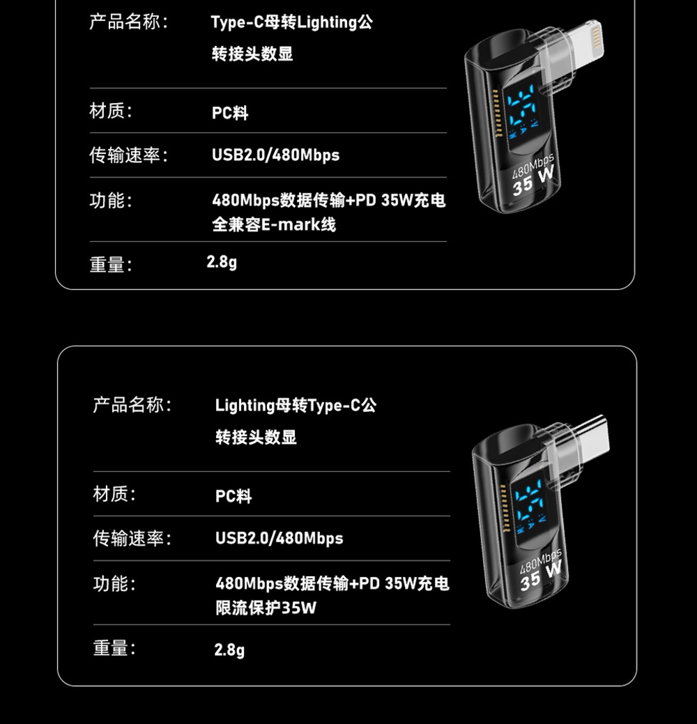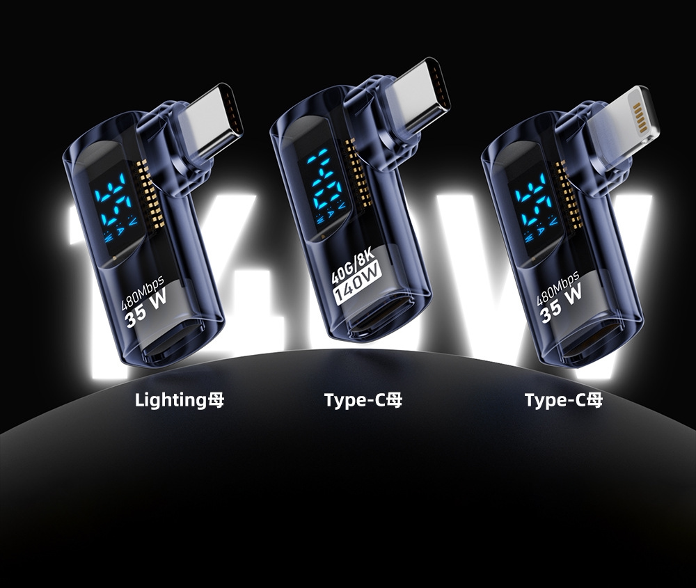 Color Classification Straight ●[Type-C Male to Type-C Female]Support 140W/40G/8K★Digital Display Adapter★Light Black,Three-Dimensional Bend●[Type-C Male to Type-C Female]Support 140W/40G/8K★Digital Display Adapter★Black,140W Digital Display U-Shaped 40Gbps Adapter[Light Black],Side Bend●[Type-C Male to Type-C Female]Support 140W/40G/8K★Digital Display Adapter★Black,Side Bend●[Type-C Male to Type-C Female]Support 140W/40G/8K★Digital Display Adapter★Light Black,Side Bend●[Type-C Male to Type-C Female]Support 140W/40G/8K★Digital Display Adapter★Light Blue,Straight ●[Type-C Female to Lightning Male]Support 35W / 480m★Digital Display Adapter★Light Black,Side Bend●[Type-C Female to Lightning Male]Support 35W / 480m★Digital Display Adapter★Black,Side Bend●[Type-C Female to Lightning Male]Support 35W / 480m★Digital Display Adapter★Light Black,Side Bend●[Type-C Female to Lightning Male]Support 35W / 480m★Digital Display Adapter★Light Blue,Straight ●[Type-C Male to Lightning Female]Support 35W / 480m★Digital Display Adapter★Light Black,Side Bend●[Type-C Male to Lightning Female]Support 35W / 480m★Digital Display Adapter★Black,Side Bend●[Type-C Male to Lightning Female]Support 35W / 480m★Digital Display Adapter★Light Black,Side Bend●[Type-C Male to Lightning Female]Support 35W / 480m★Digital Display Adapter★Light Blue