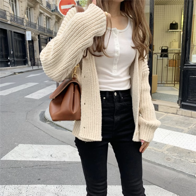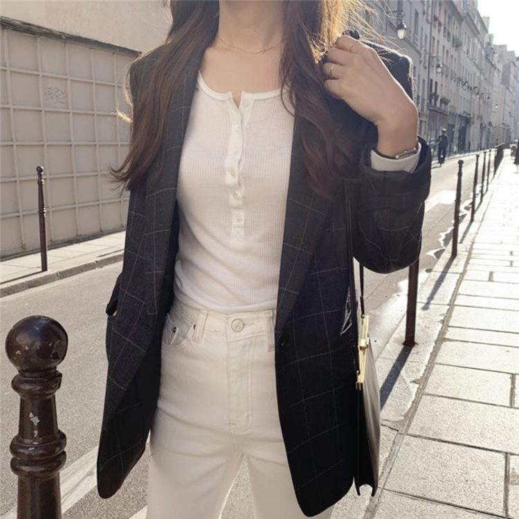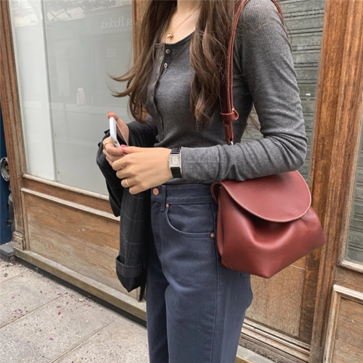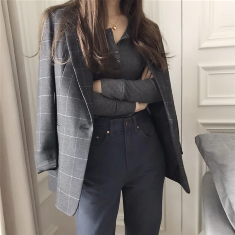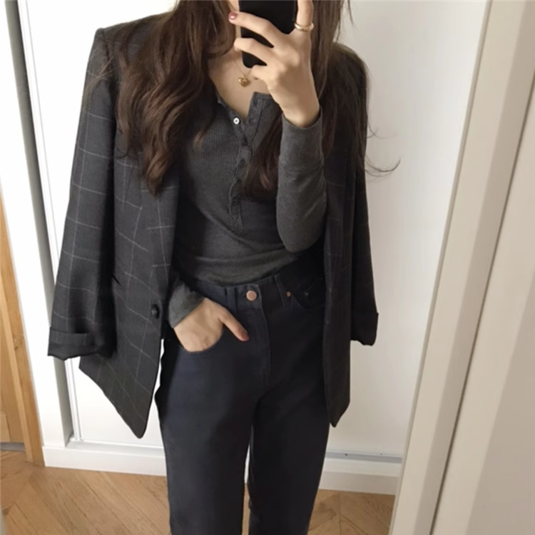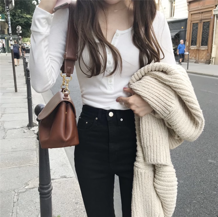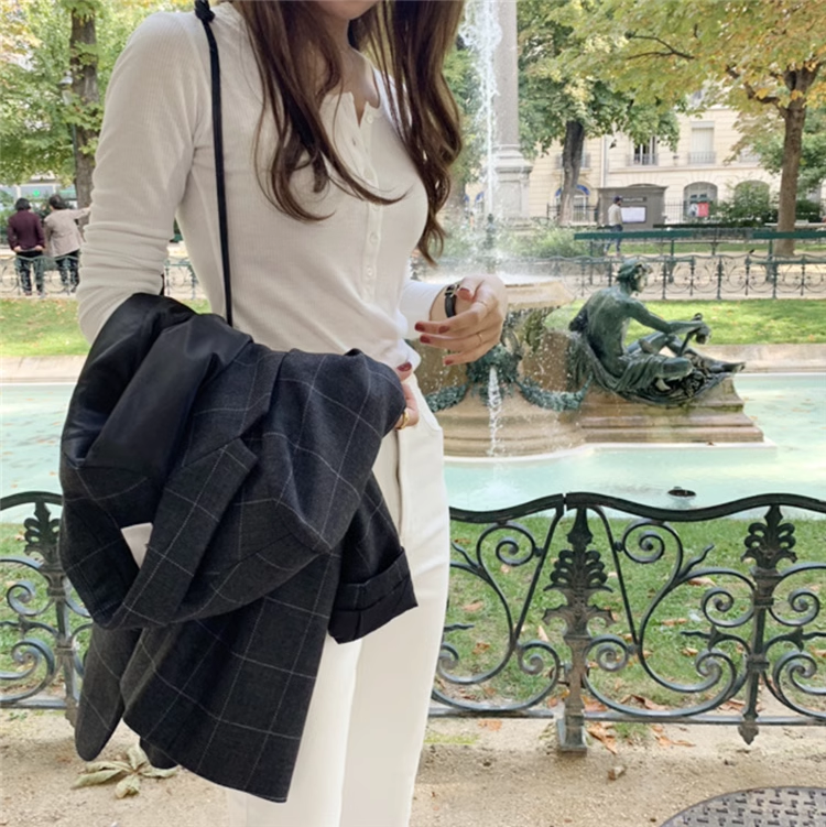 Unique and Chic Henry Collar Inner Layering Shirt for Women, Autumn and Winter Design with Buttons, Slimming, Regular Shoulder, Long-Sleeved T-Shirt Top