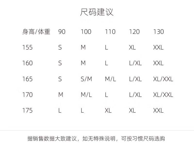 China (cm) 160-165/84-86 165-170 / 88-90 167-172 / 92-96 168-173 / 98-102 170-176 / 106-110