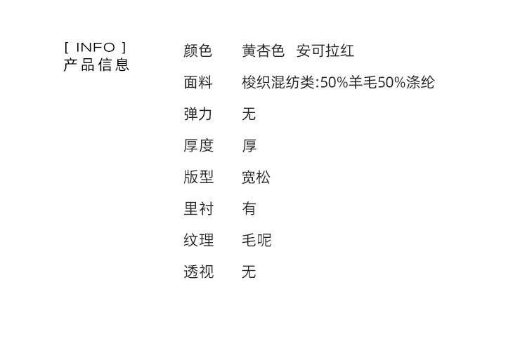 Material ingredients 50% wool polyethylene terephthalate (polyester) 50%