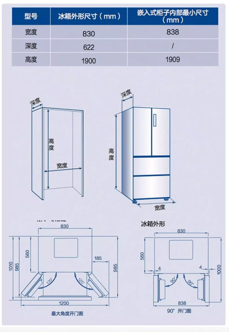 Width Depth (Thickness) Height 830x622x1900mm