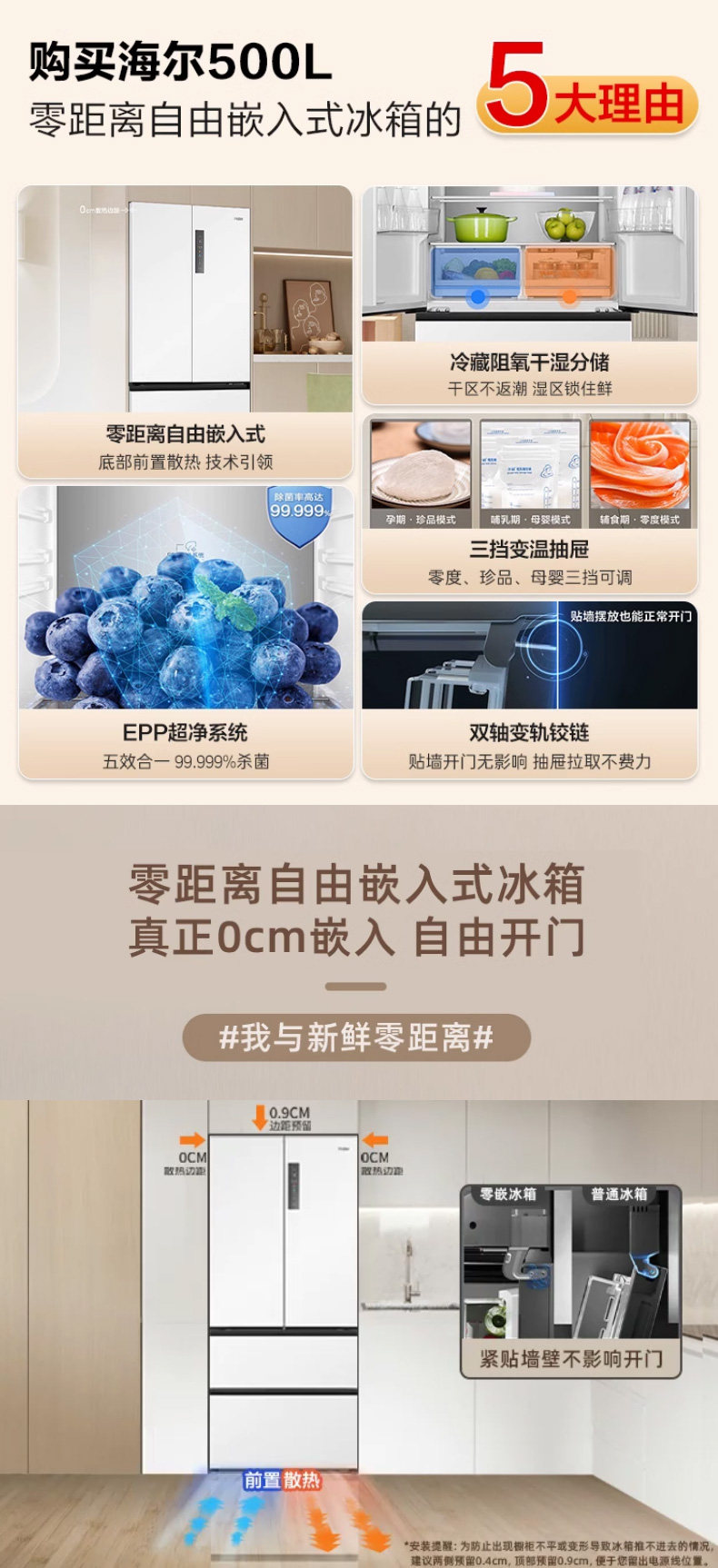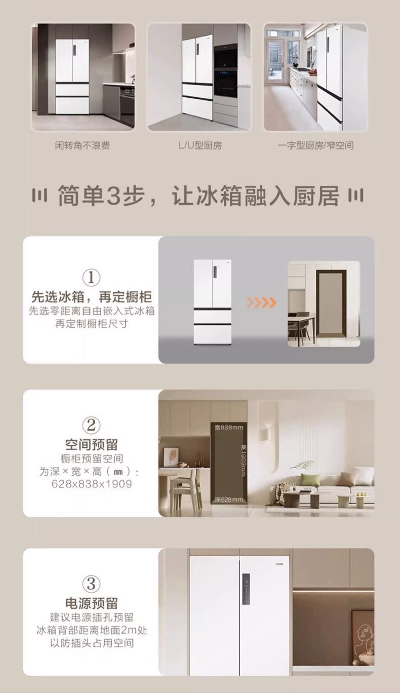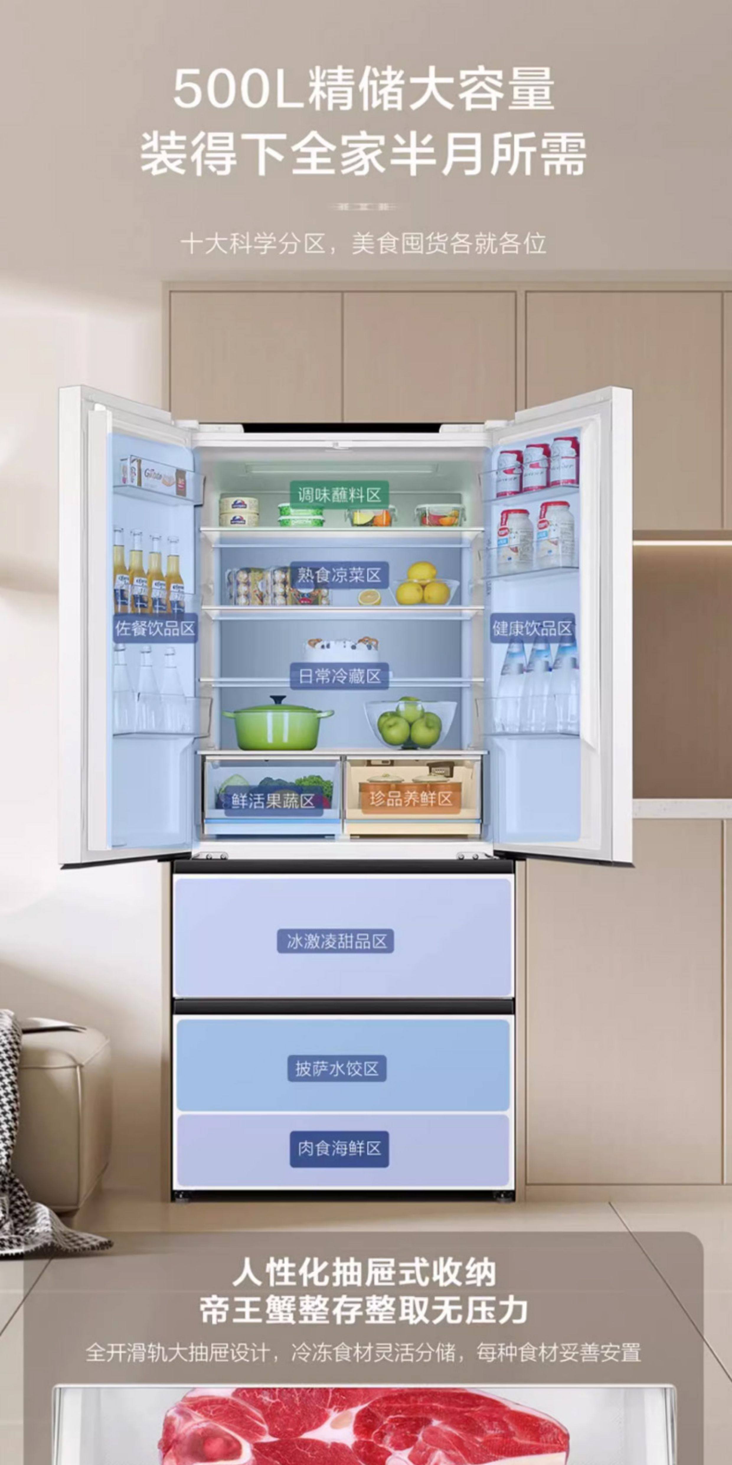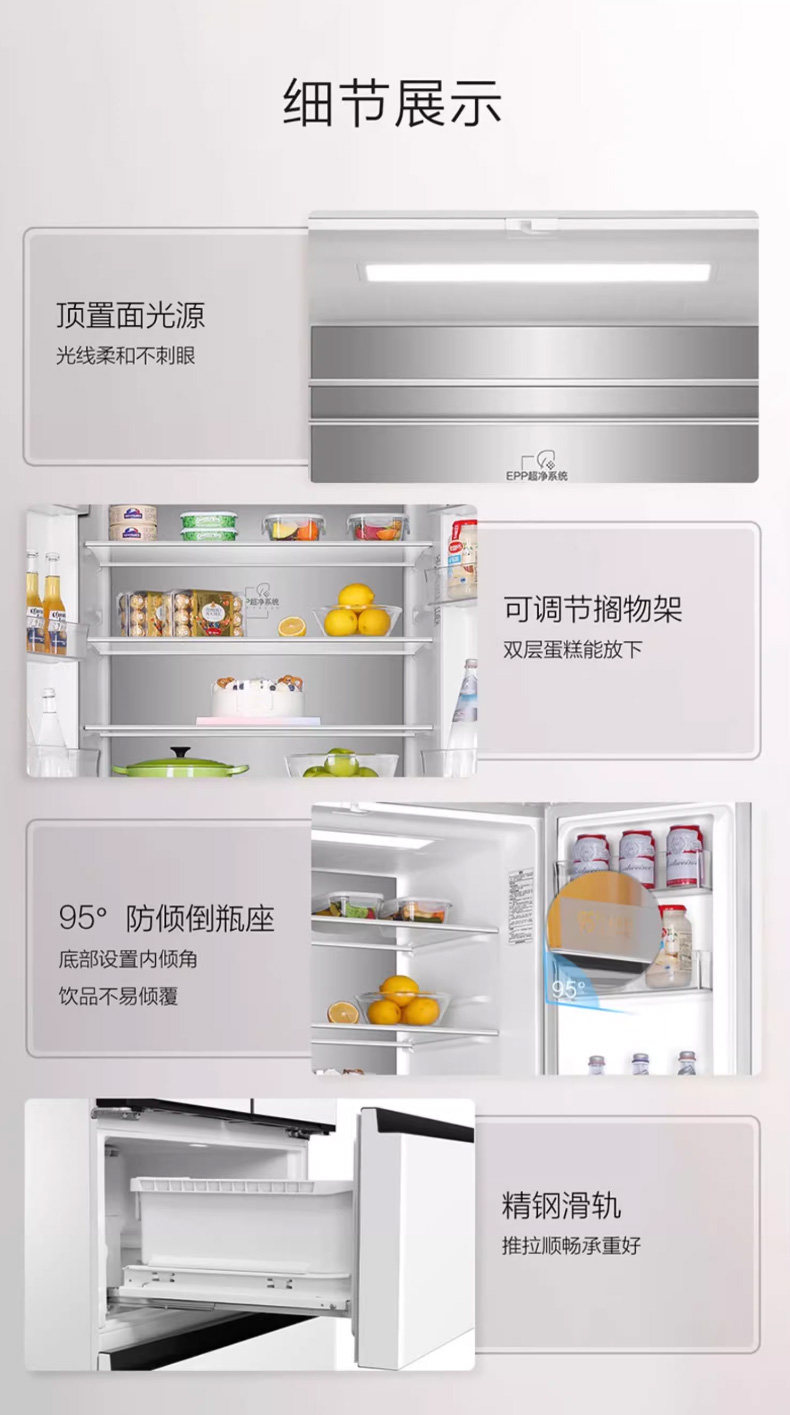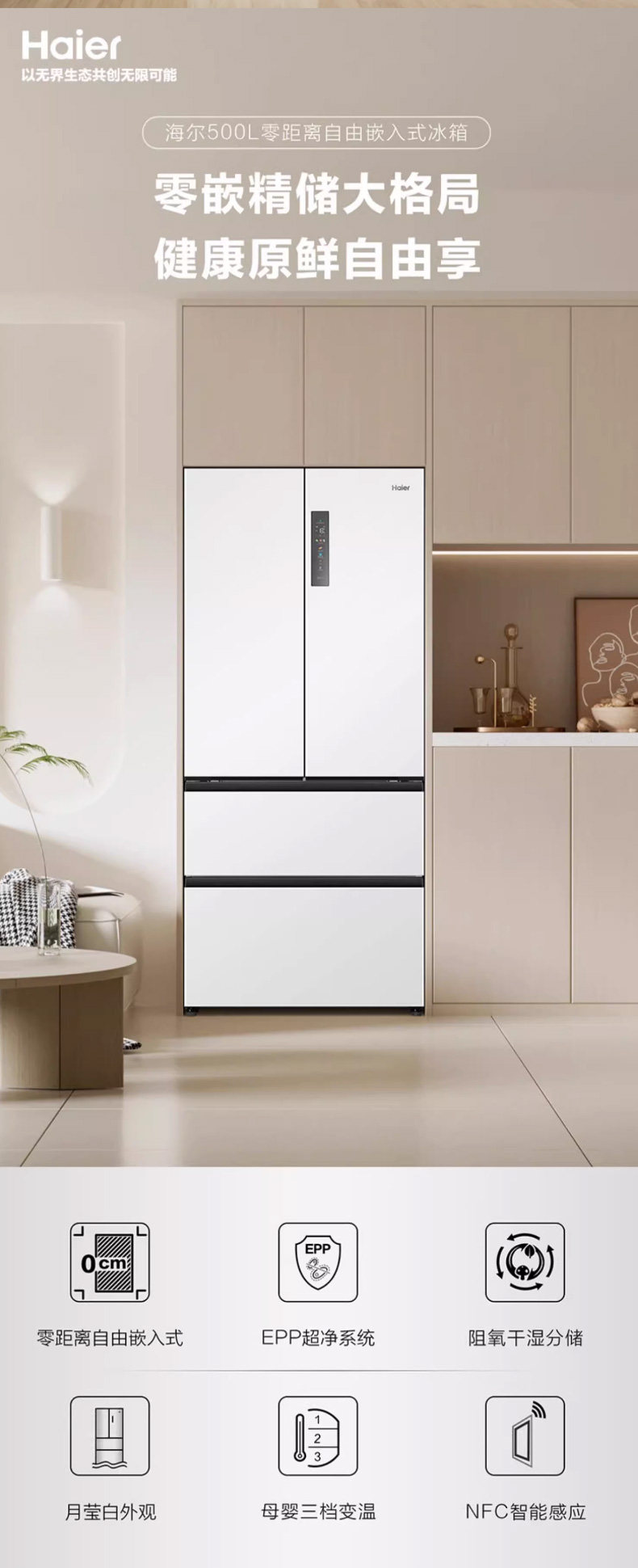 Haier 510L French multi-door four-door ultra-thin embedded large-capacity household first-class frequency conversion white frost-free refrigerator