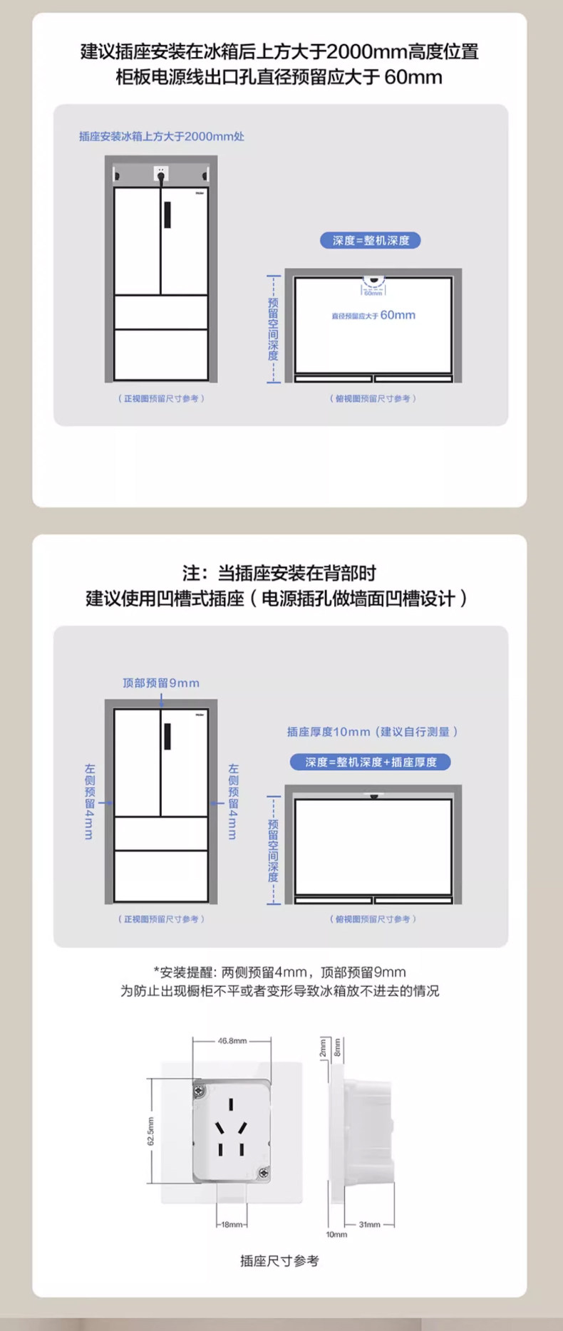 Reserved installation width 838mm