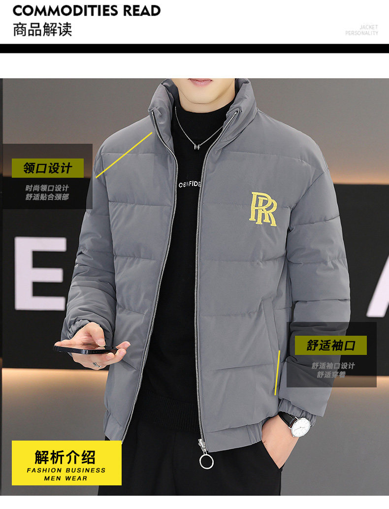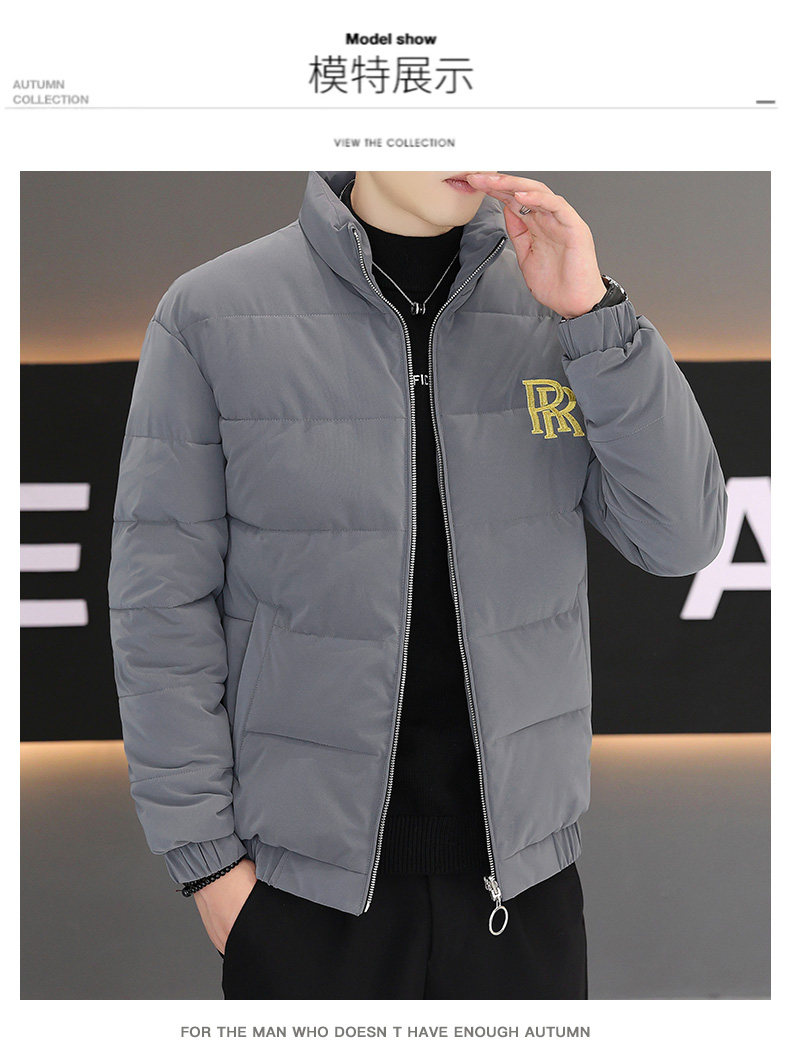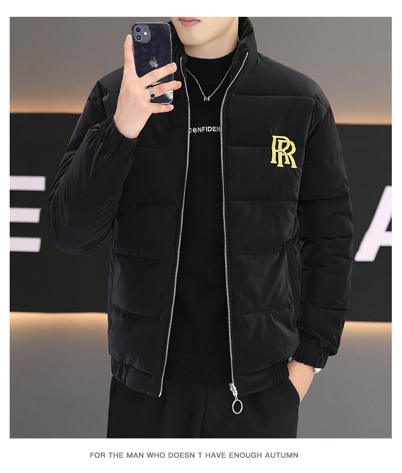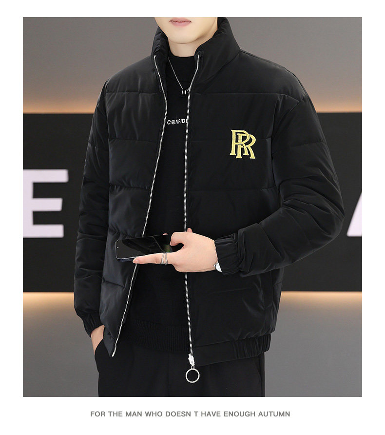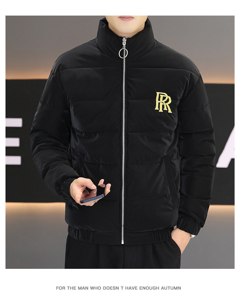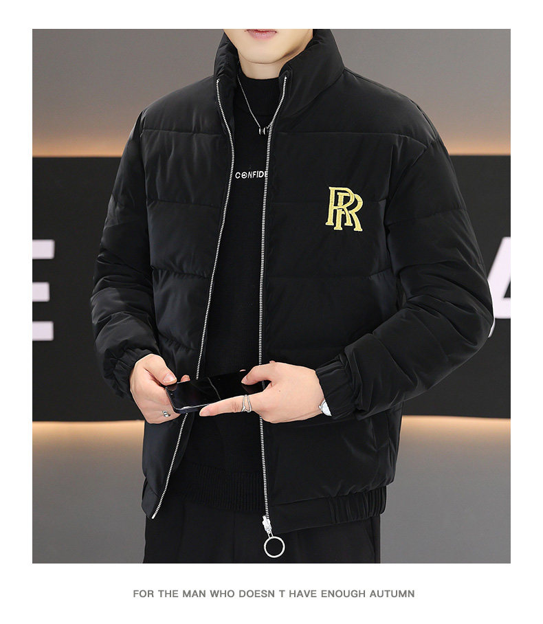 High-End Embroidered Cotton Jacket for Men, New Thickened Warm Stand-Up Collar Cotton Coat for Autumn and Winter, Trendy Versatile Short Cotton-Padded Jacket