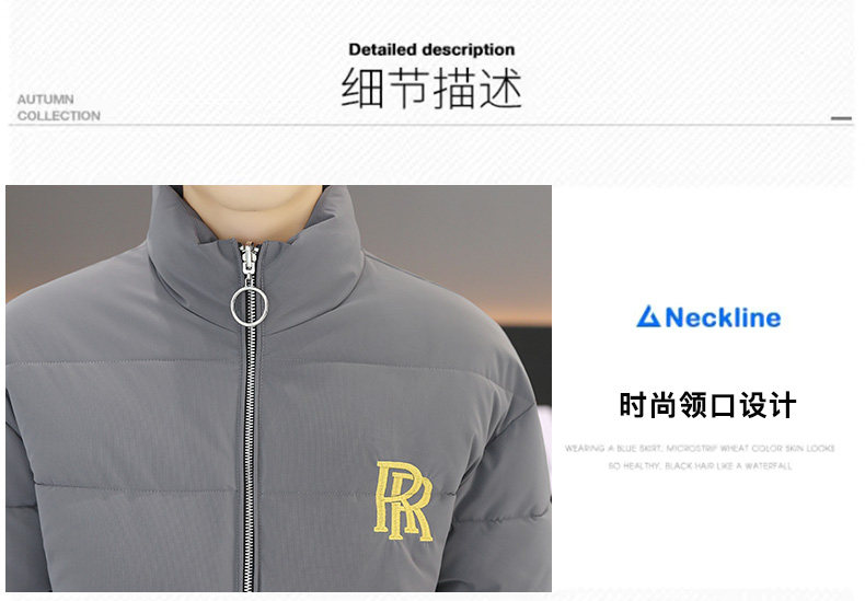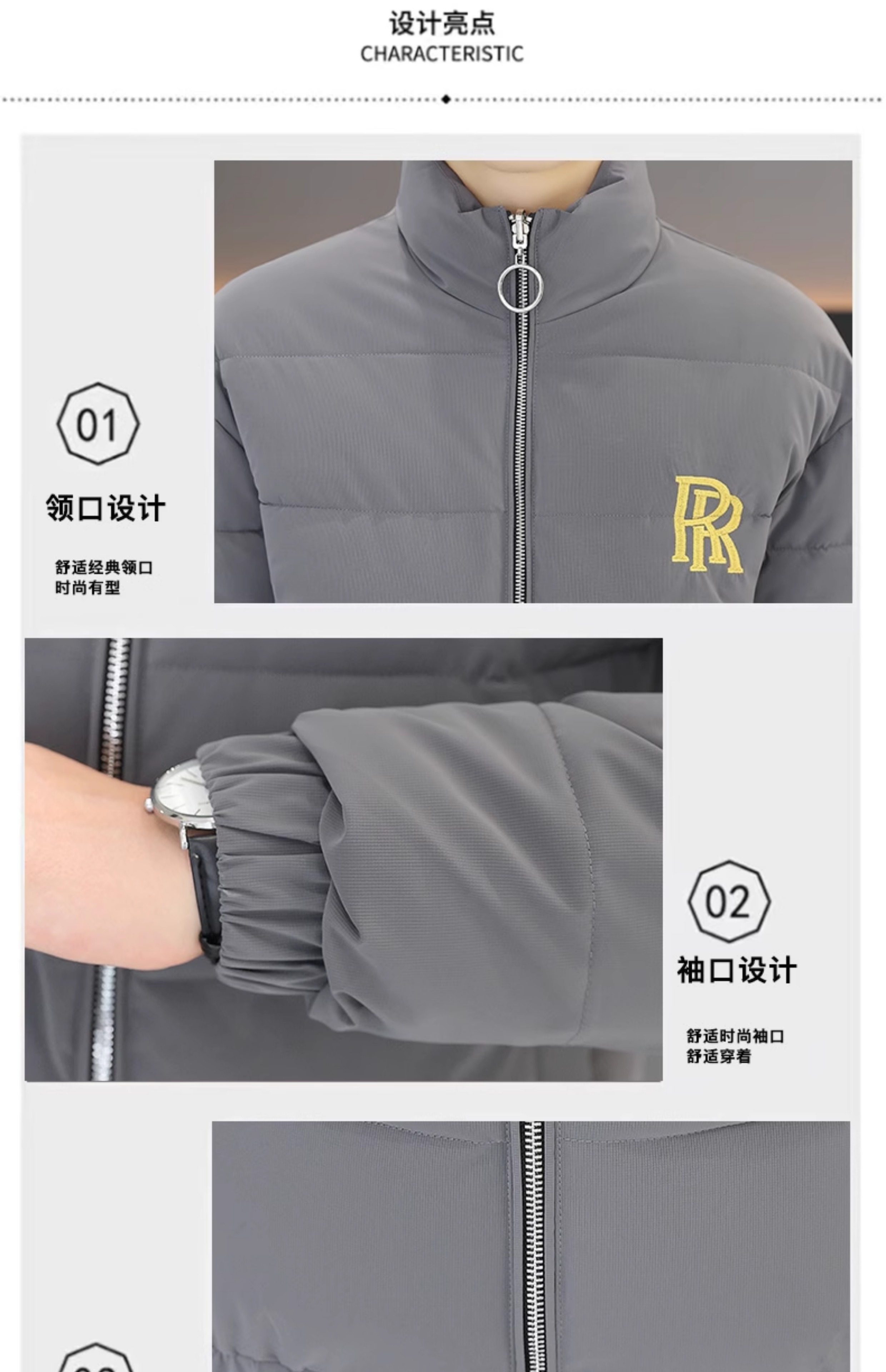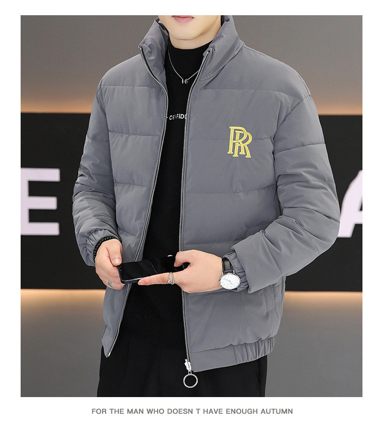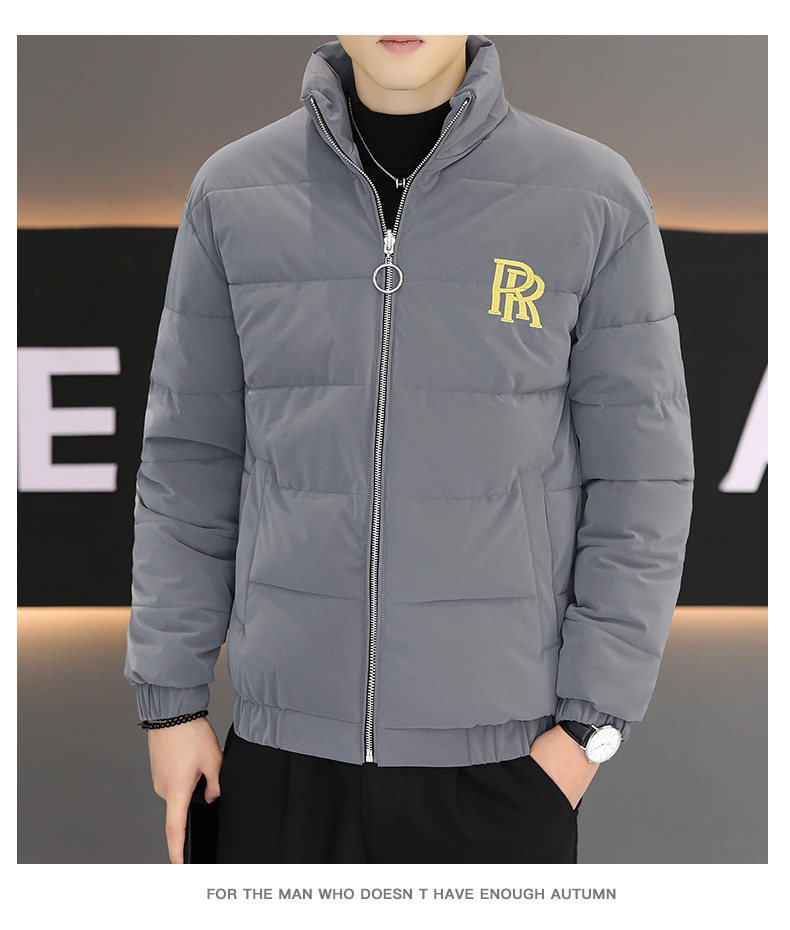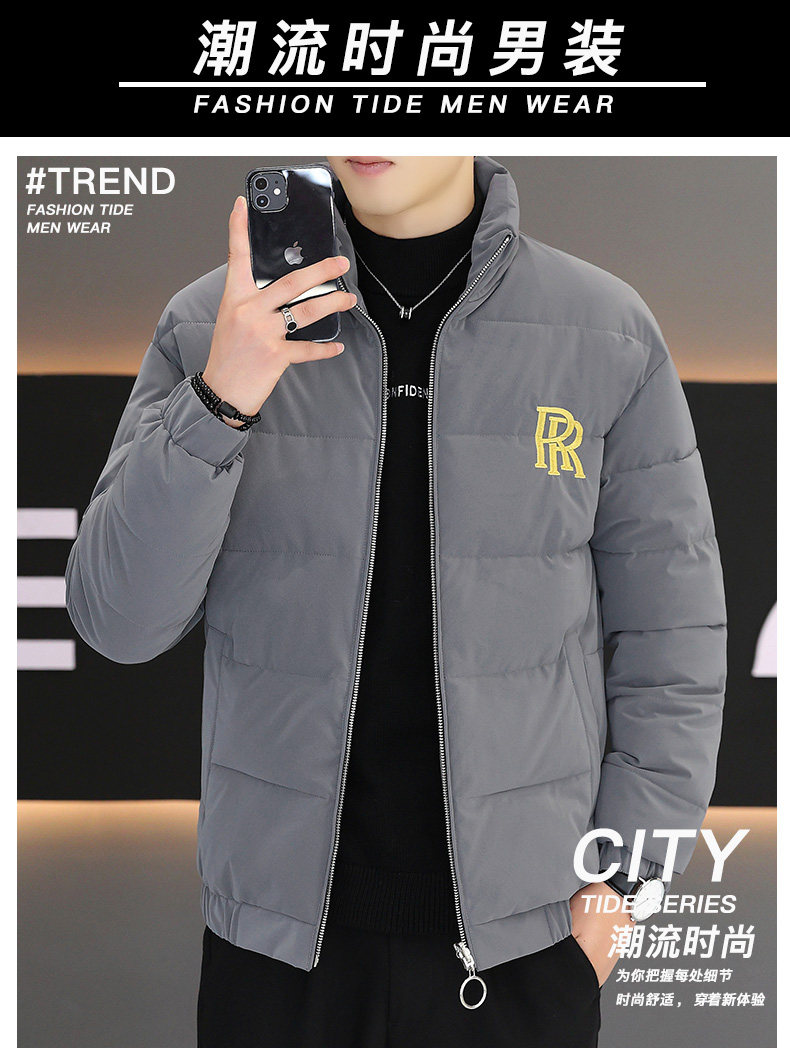 High-End Embroidered Cotton Jacket for Men, New Thickened Warm Stand-Up Collar Cotton Coat for Autumn and Winter, Trendy Versatile Short Cotton-Padded Jacket