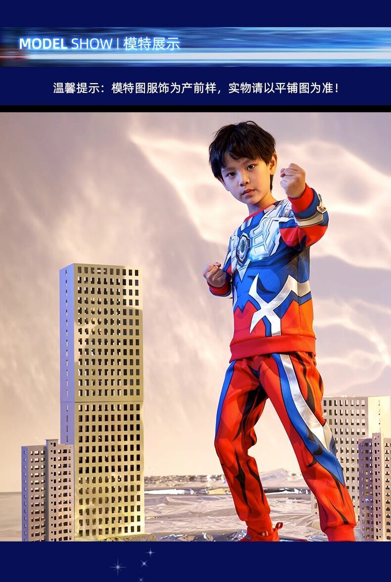 Authentic Ultraman Clothing for Boys, Zero Zeta Autumn and Winter Sweatshirt Set, New Boys' Cosplay Children's Clothing, Cool